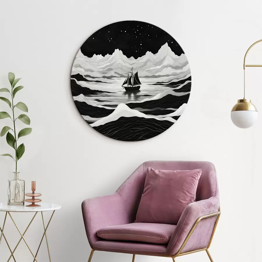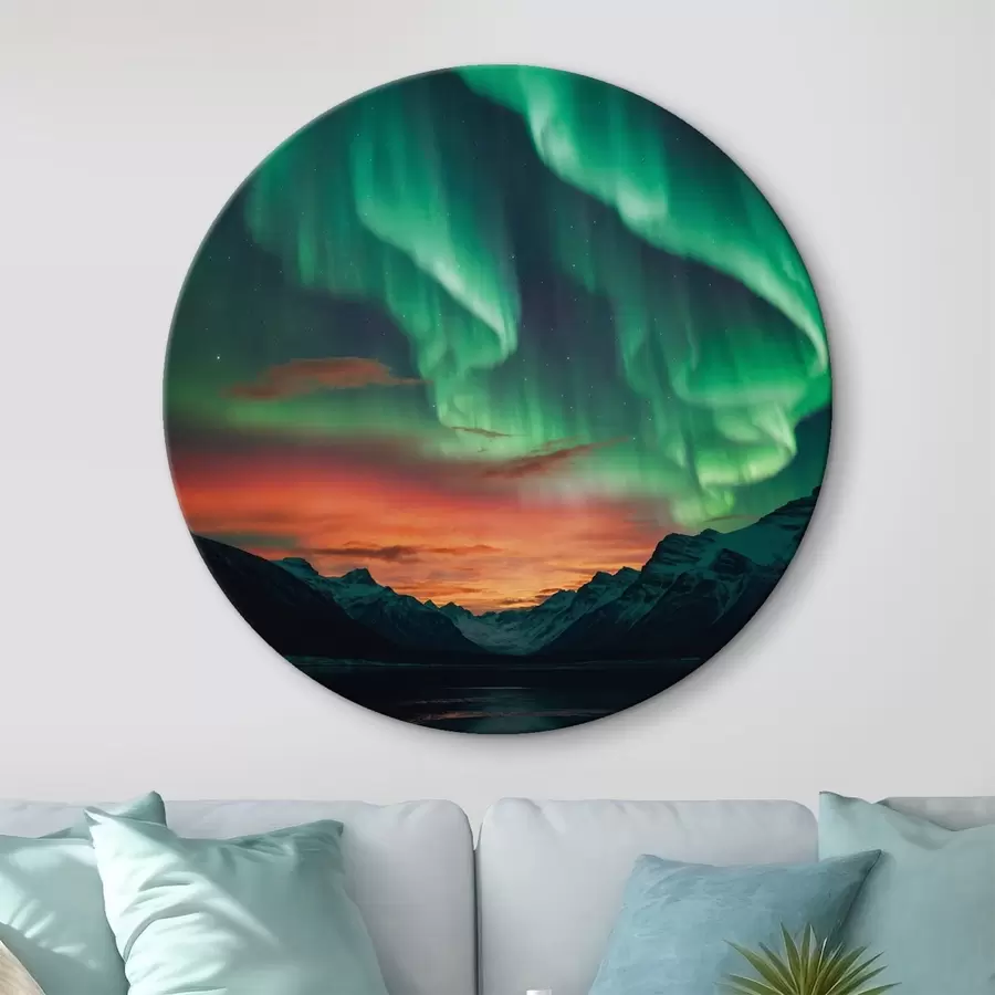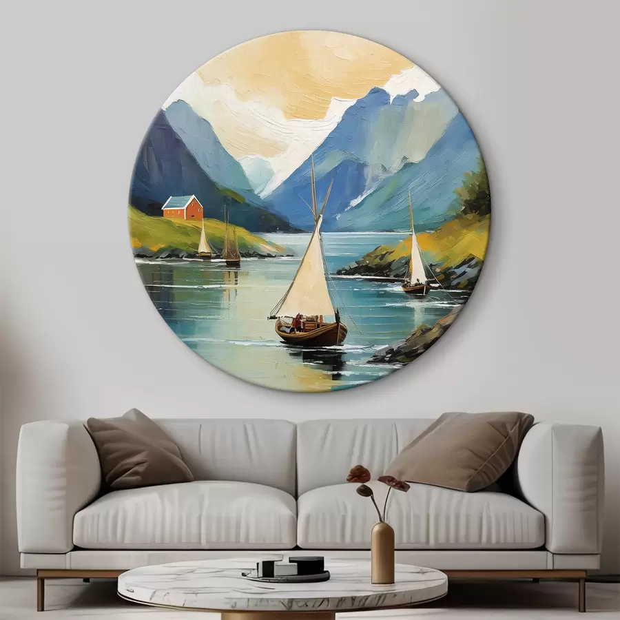 Norvegijos vasaros peizažai,šiaurės jūra,jachtos,mėlyni kalnai,saulėlydis,akrilo menas