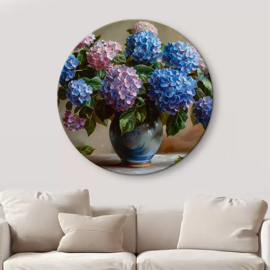 aliejinė tapyba iš švelnių baltų gėlių mėlyname fone