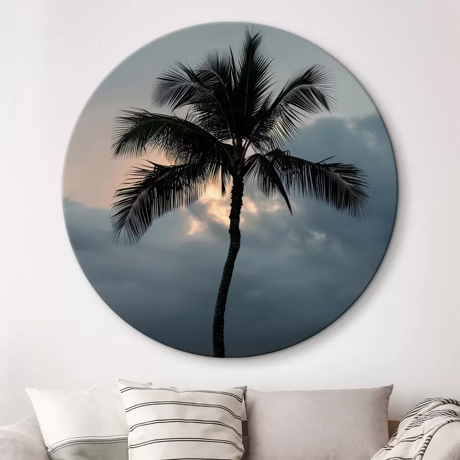 Klasikinė architektūrinė kolona, apsupta vešlių atogrąžų lapų, įskaitant palmių lapus