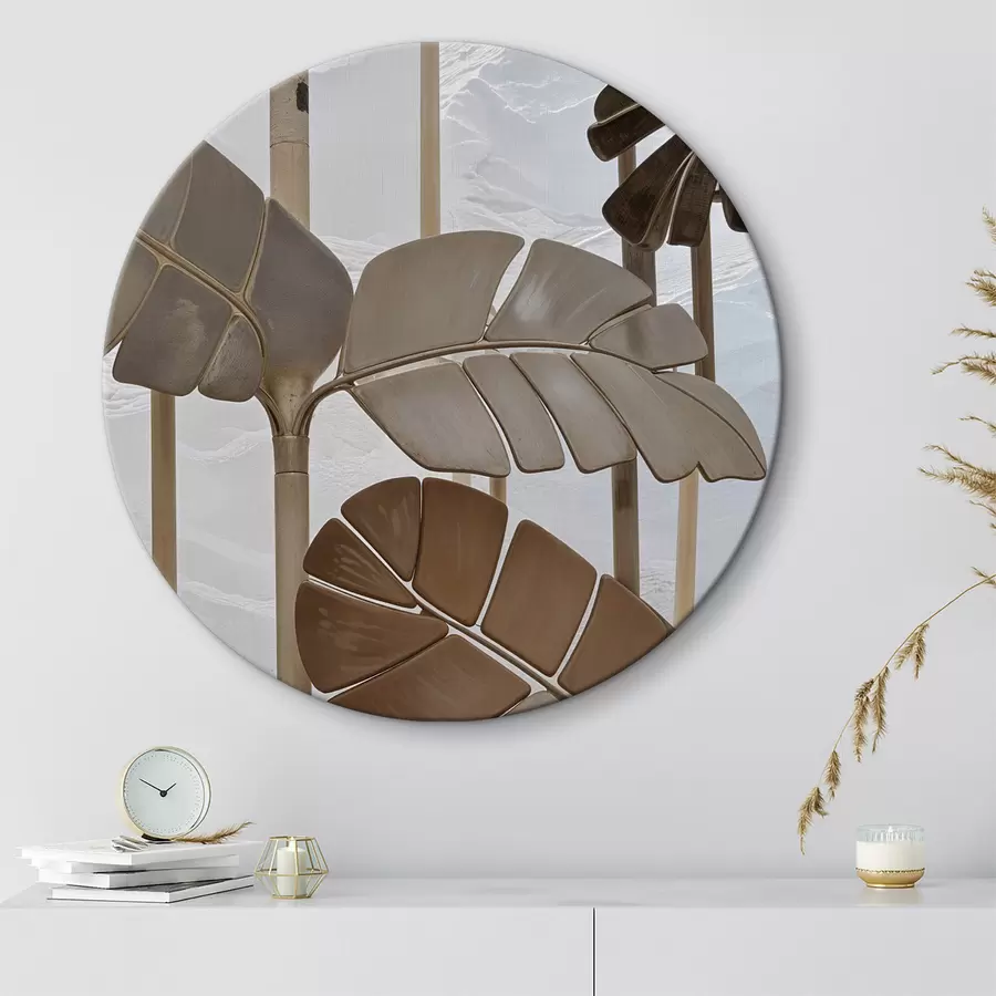 Abstrakčių palmių lapų ar gniūžčių, pagamintų iš įvairių rudų ir smėlio atspalvių atspalvių, vaizdas iš arti