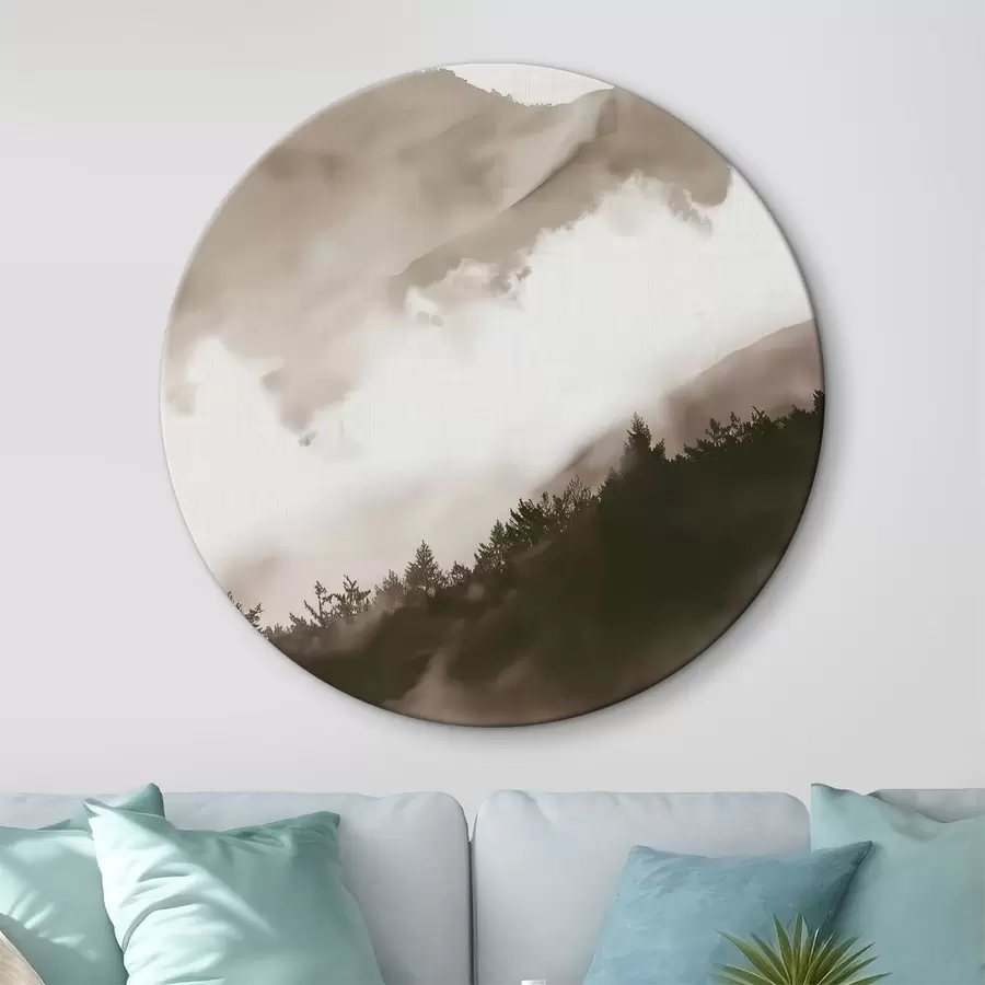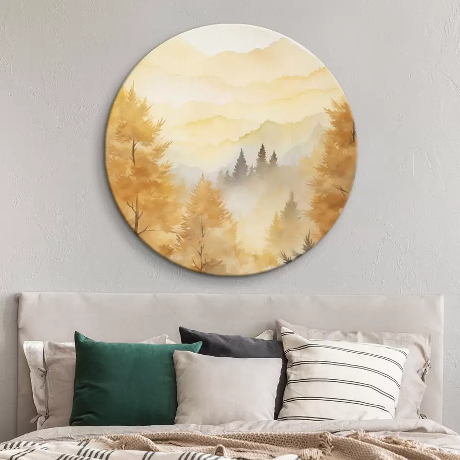 Akvarelinis kalnų kraštovaizdis su medžiais