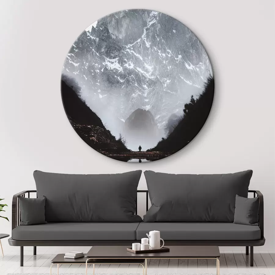 Kalnai baltame fone aliejinės tapybos stiliumi