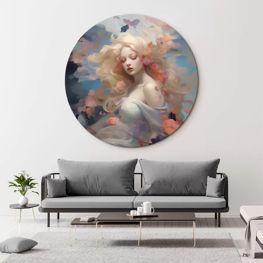 Moteris su gėlėmis ant galvos, gatvės meno stilius