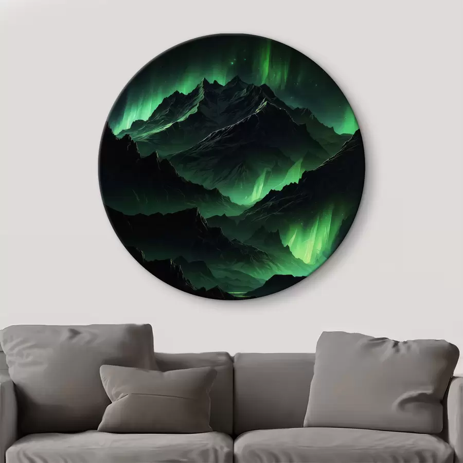 Juodi kalnai apšviesti šiaurės pašvaistėmis