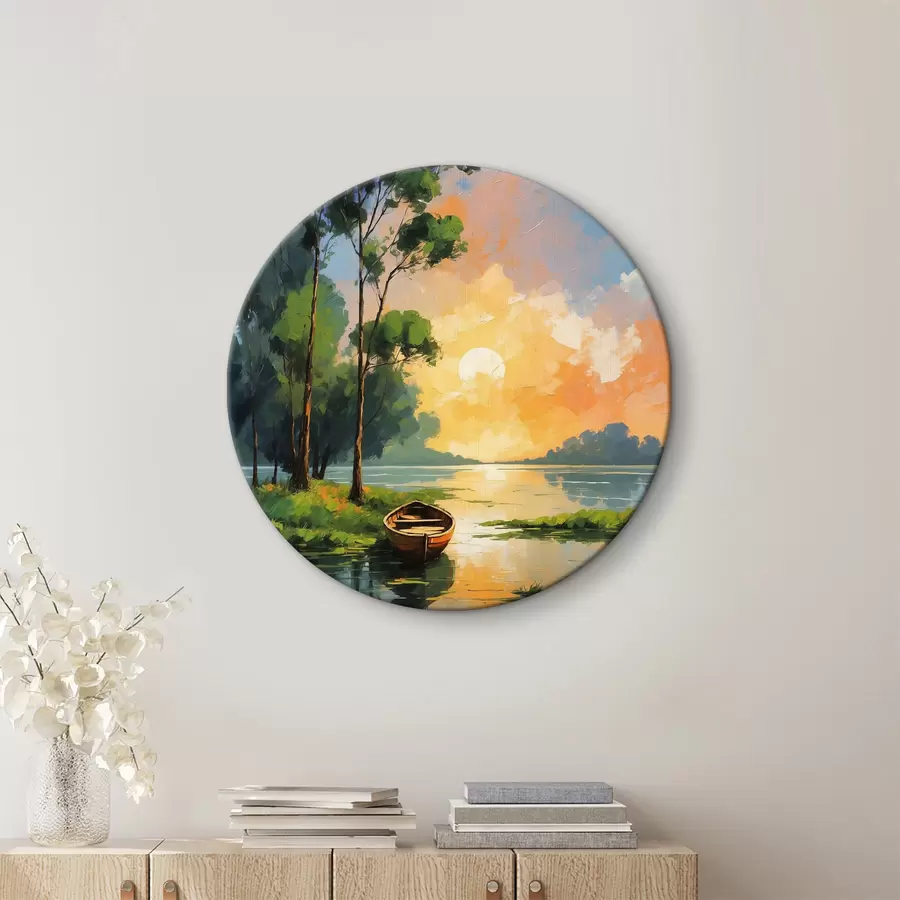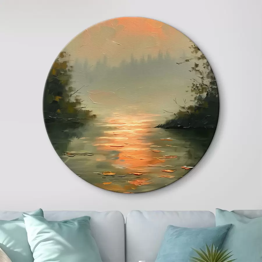 Ežero kraštovaizdžio saulėlydžio spausdinta tekstūra