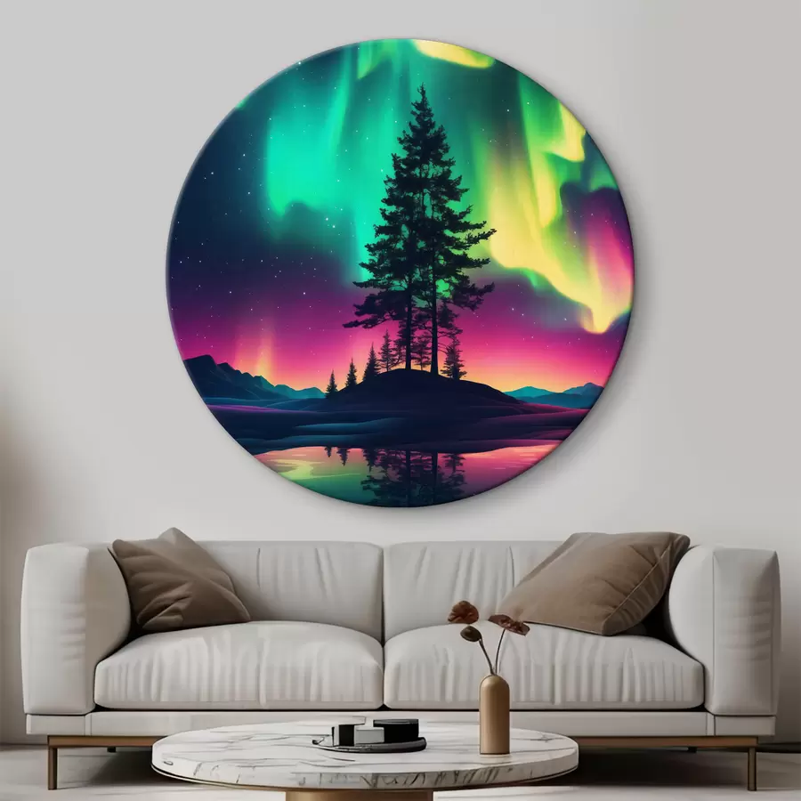Šiaurės pašvaistė virš Kalėdų eglučių
