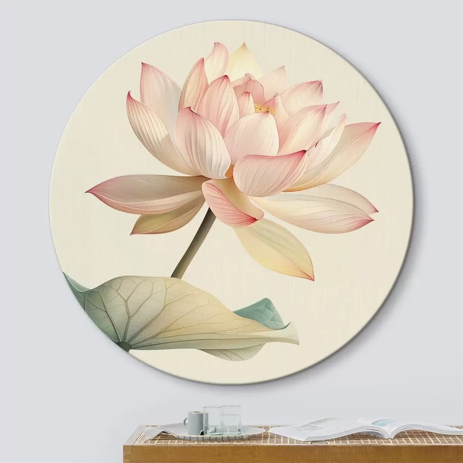 Balta tekstūruota lotoso gėlė su tamsiais lapais, šviesus fonas, minimalistinis dizainas