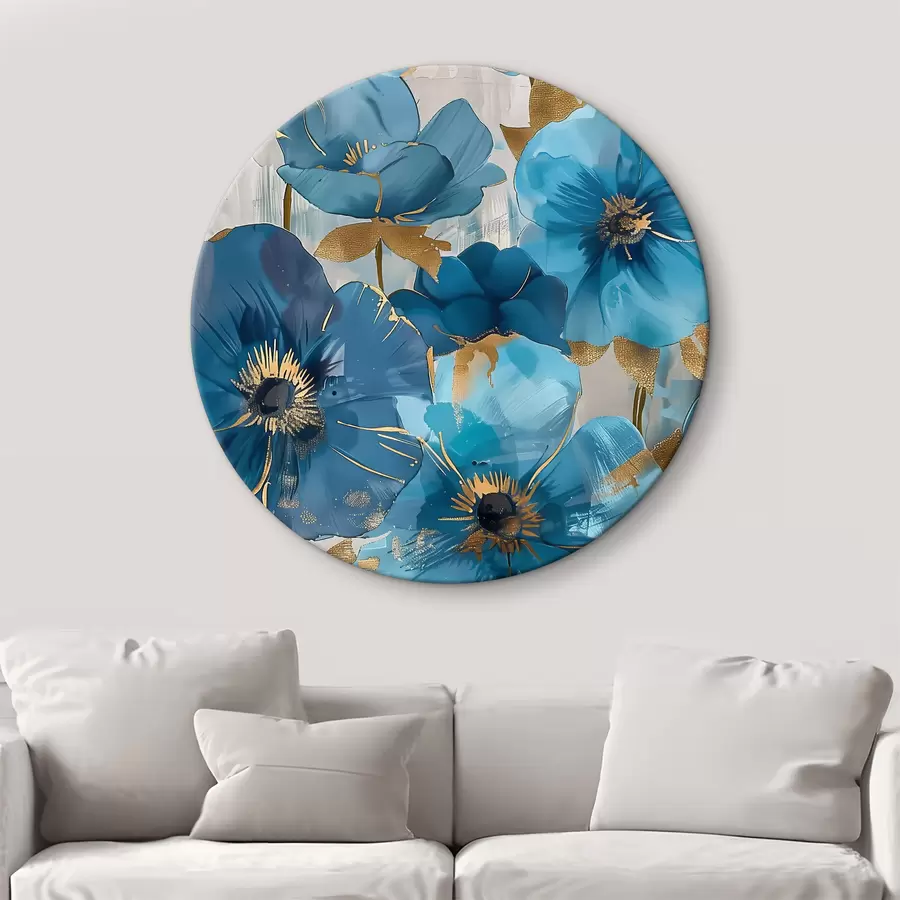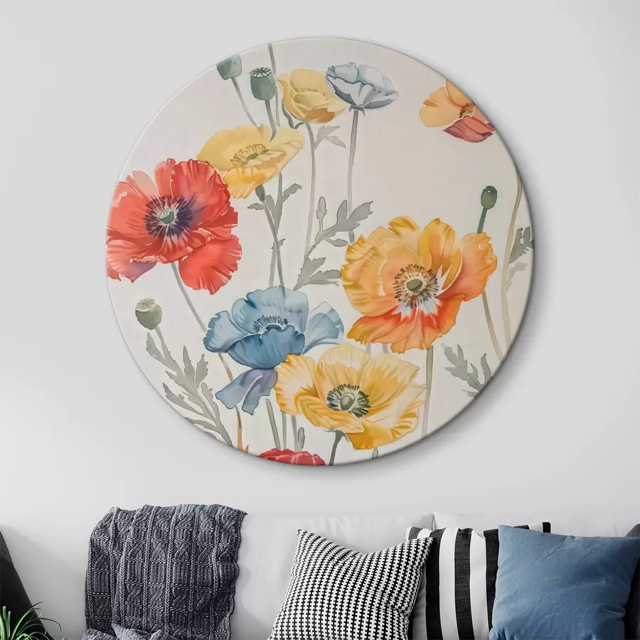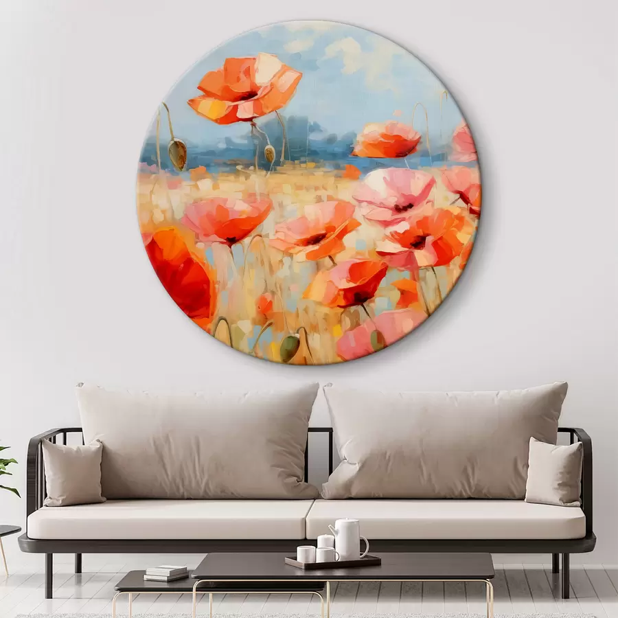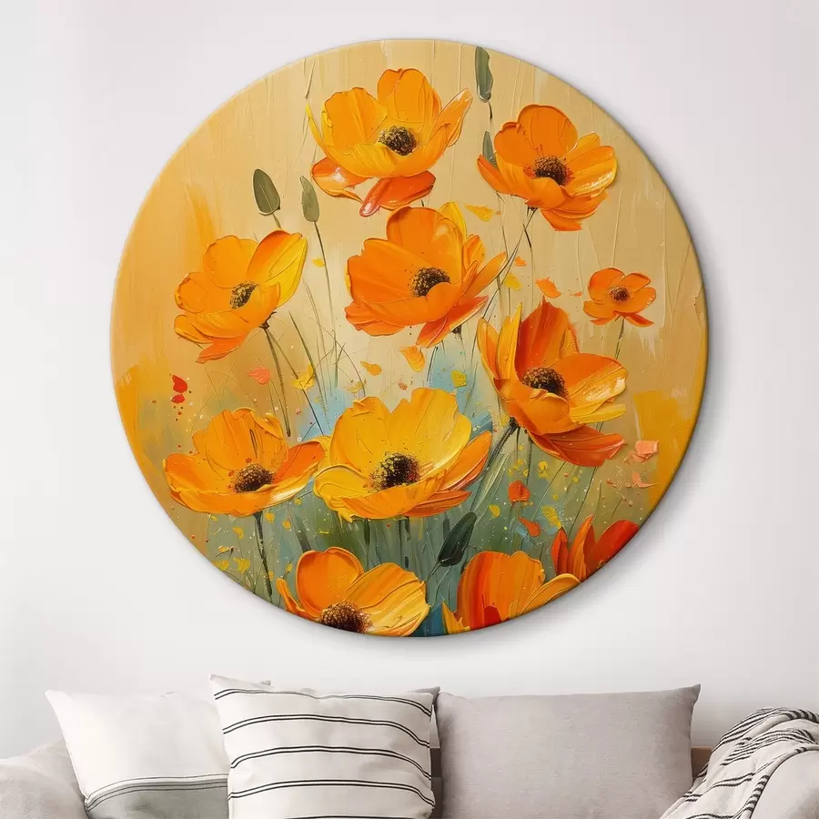 Baltųjų aguonų aliejinė tapyba, mėlynos ir oranžinės spalvos