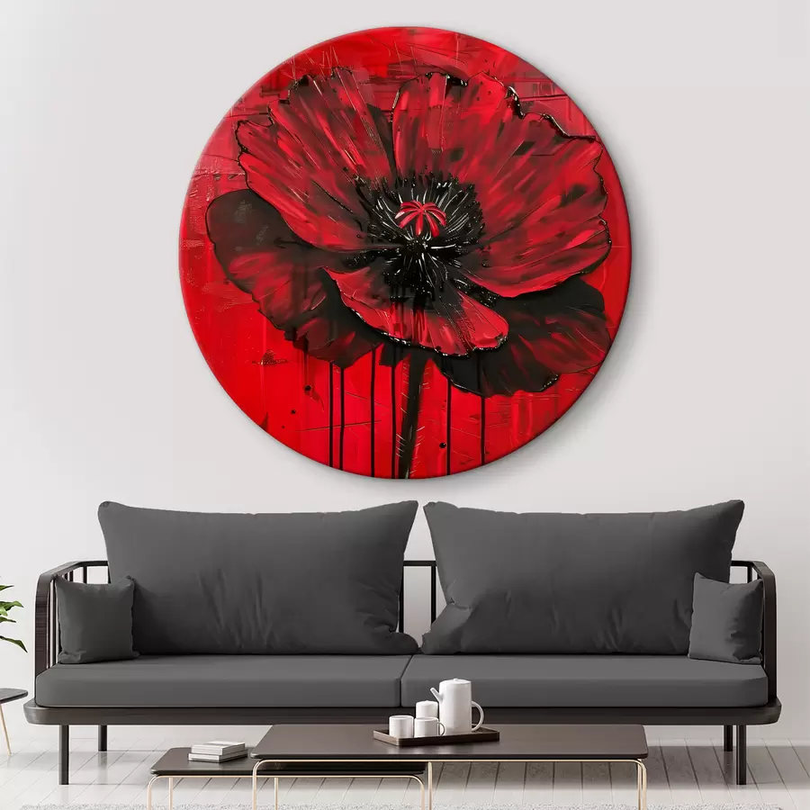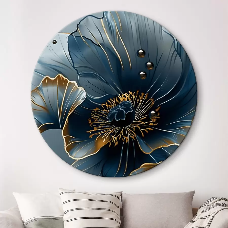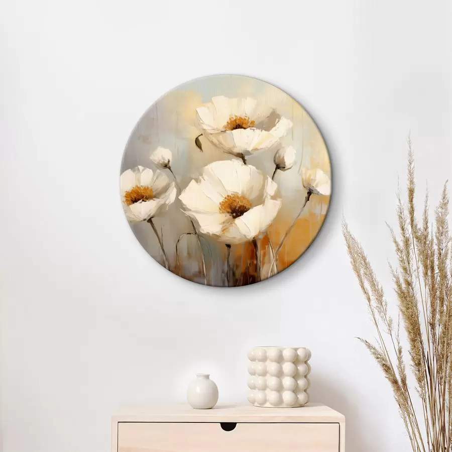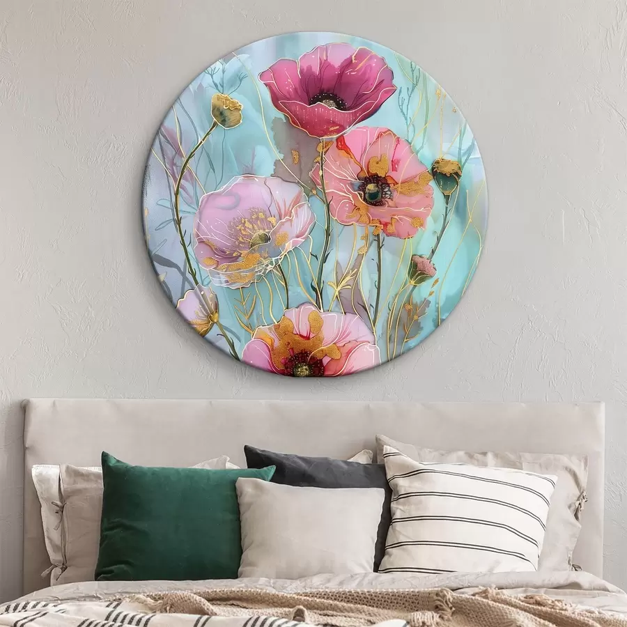 Baltųjų aguonų aliejinė tapyba, mėlynos ir oranžinės spalvos