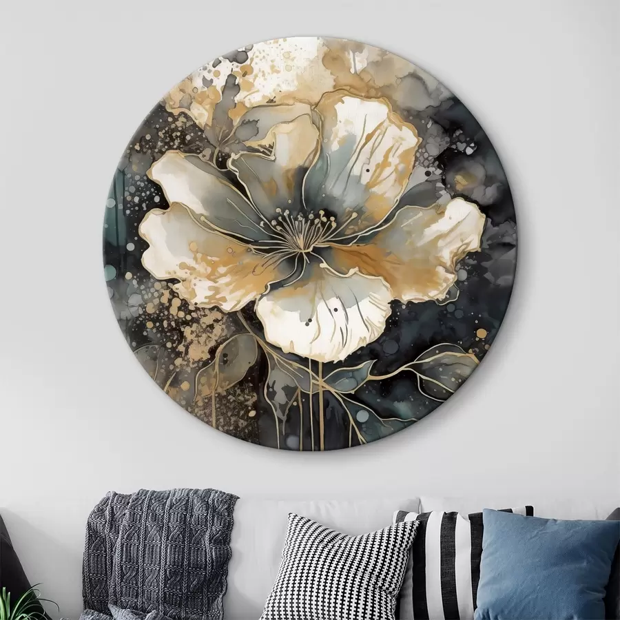 Abstrakti gėlė akvarelės fone su dažų purslais