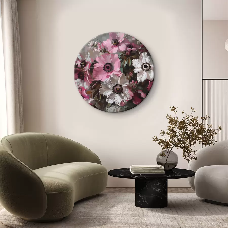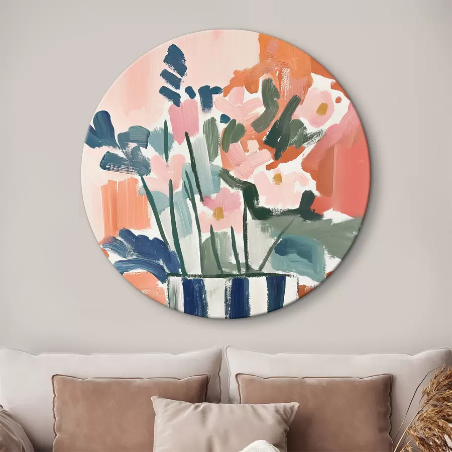 Abstrakčios gėlės vazoje, dažytos akrilu
