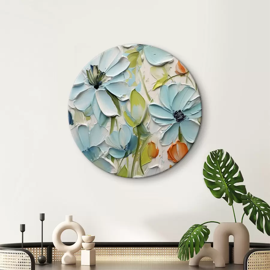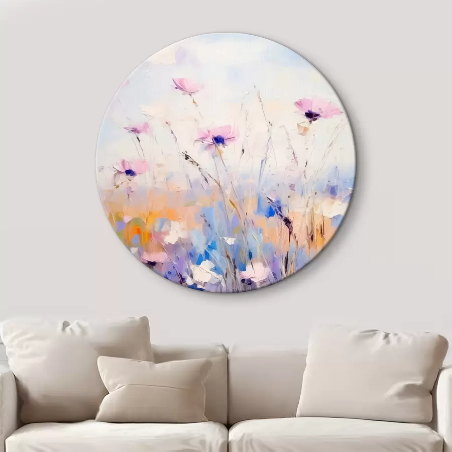 Gėlės pievoje, kaimiškas, akrilo stilius