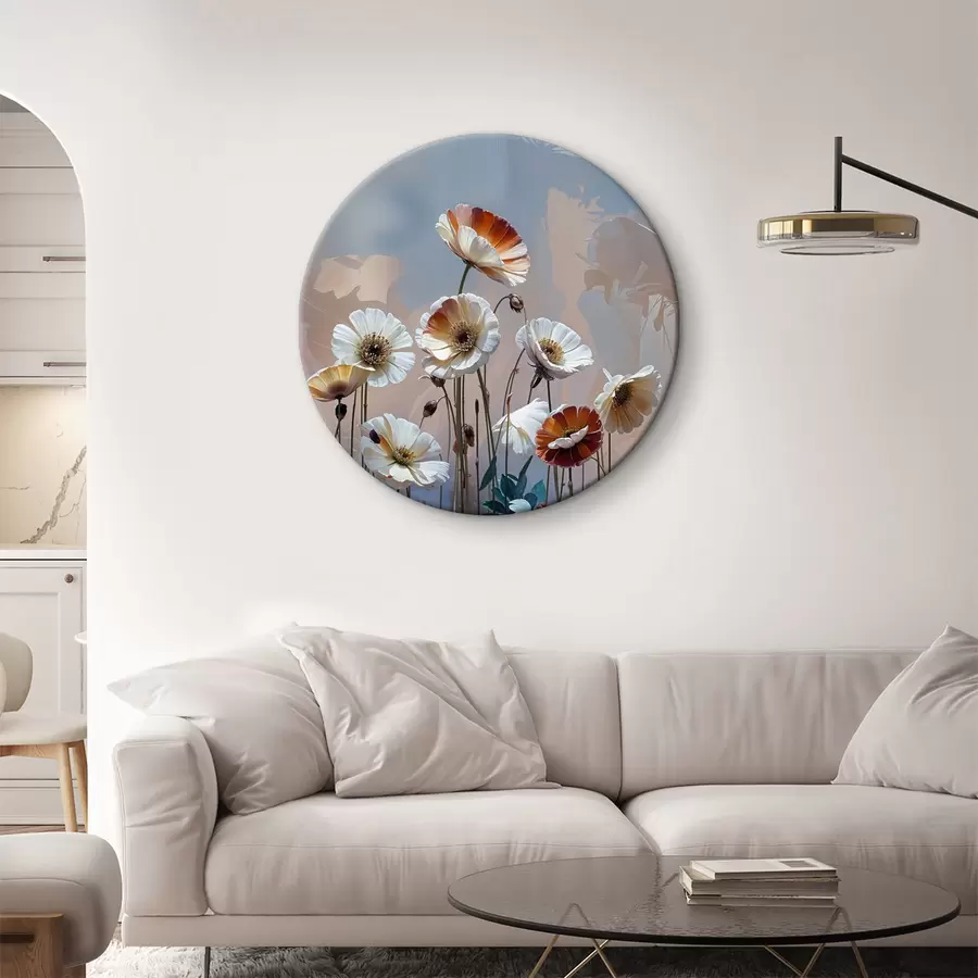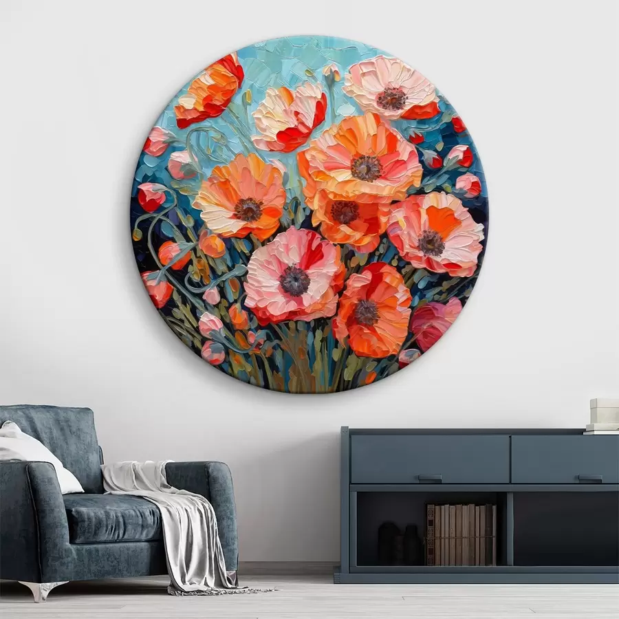 Baltųjų aguonų aliejinė tapyba, mėlynos ir oranžinės spalvos