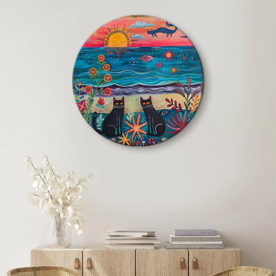 Katės rožinėje vonioje su žaliais lapais, džiunglių atmosfera