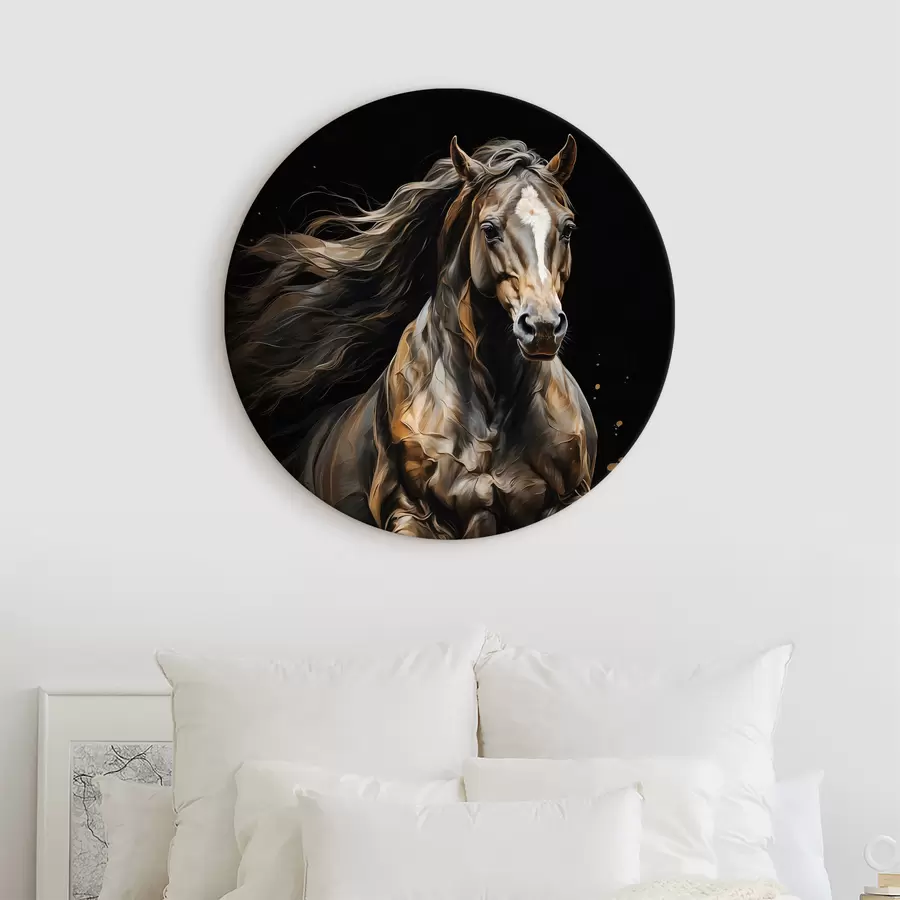Arkliai šuoliuoja pievos aliejiniais paveikslais