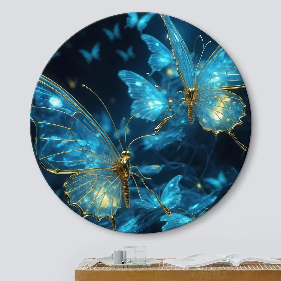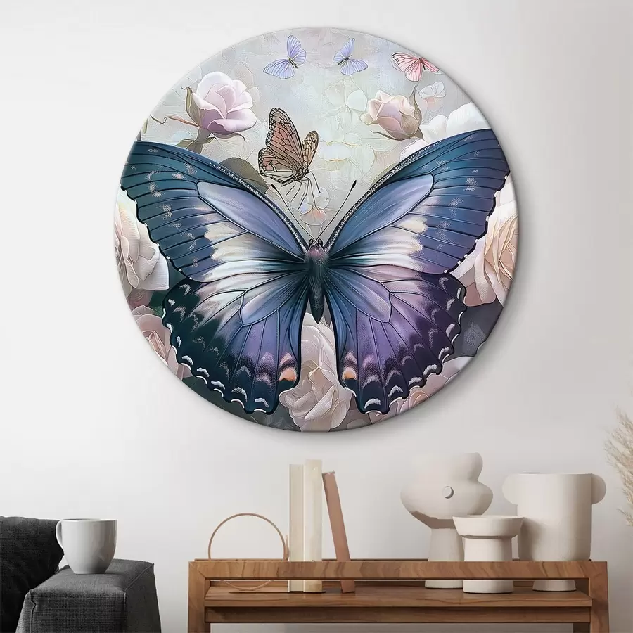 Drugelių pulkas, skraidantis ant mėlynos alyvos paveikslo