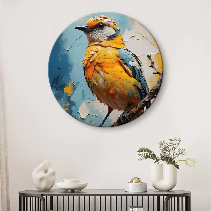 Paukštis ant šakos abstrakčiame aliejaus fone