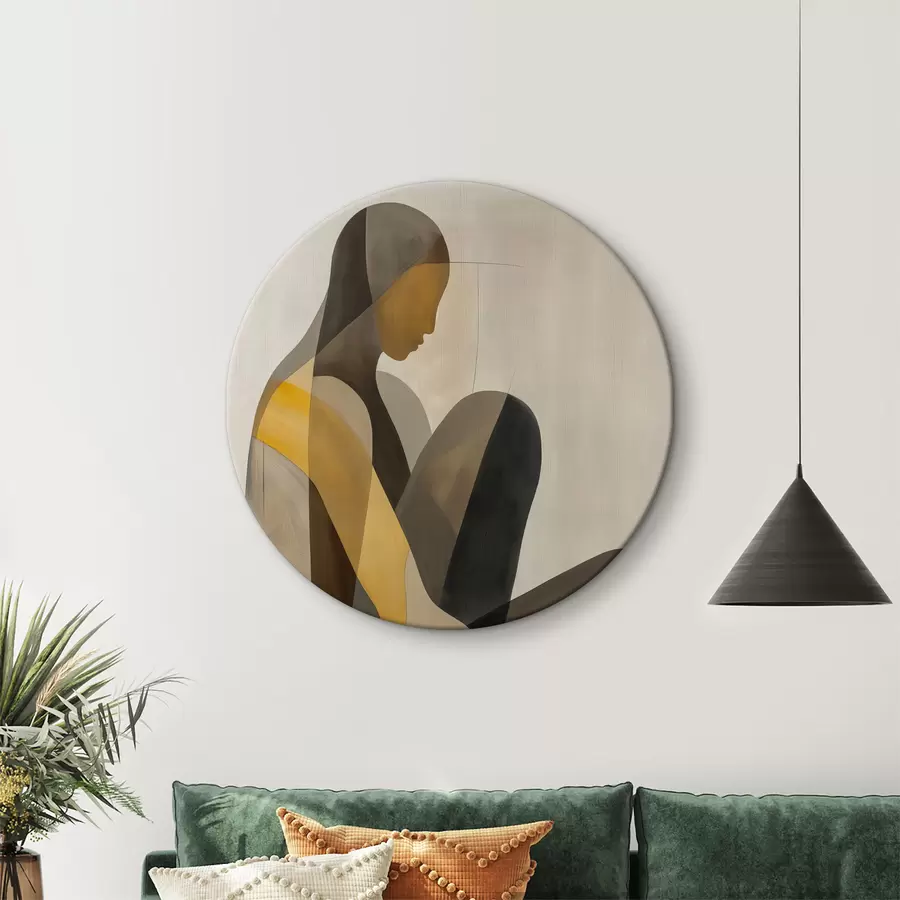 Moters portretas, minimalizmas, akrilo stilius, smėlio spalvos
