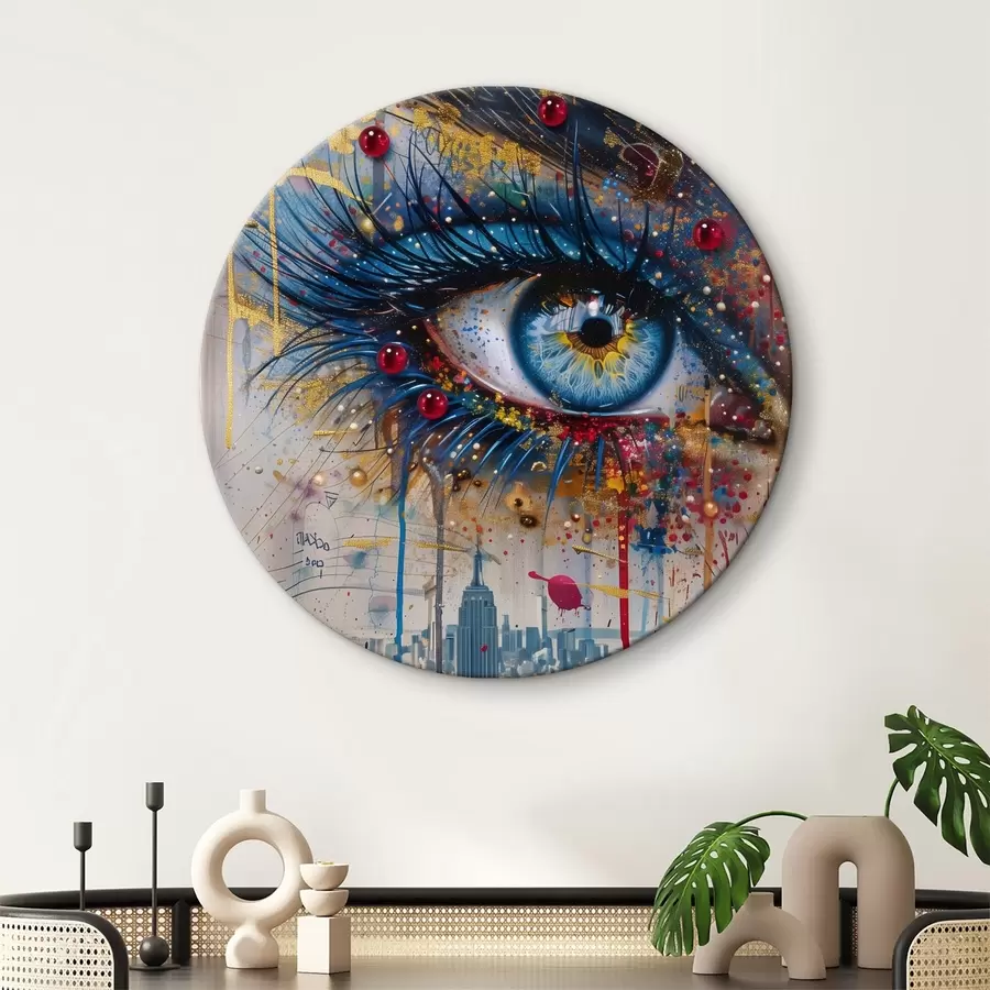 Mėlynos akys ir miesto vaizdas