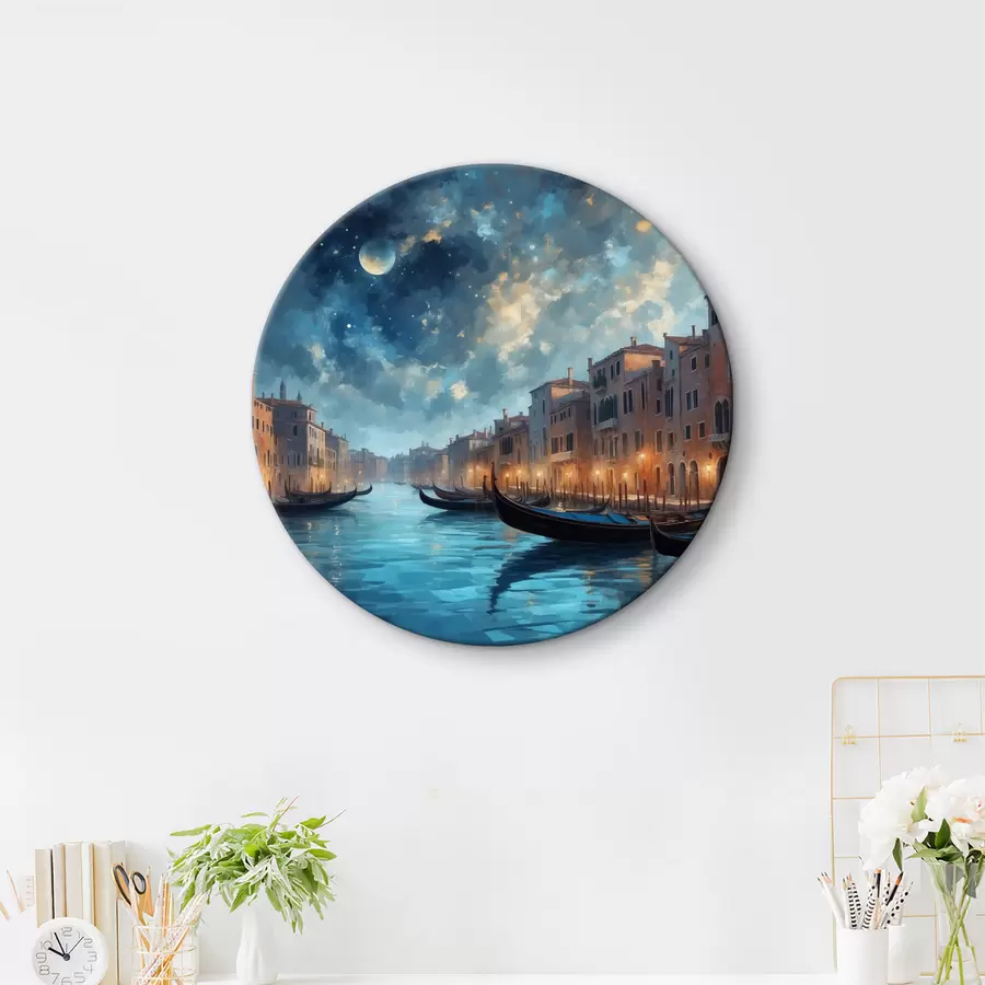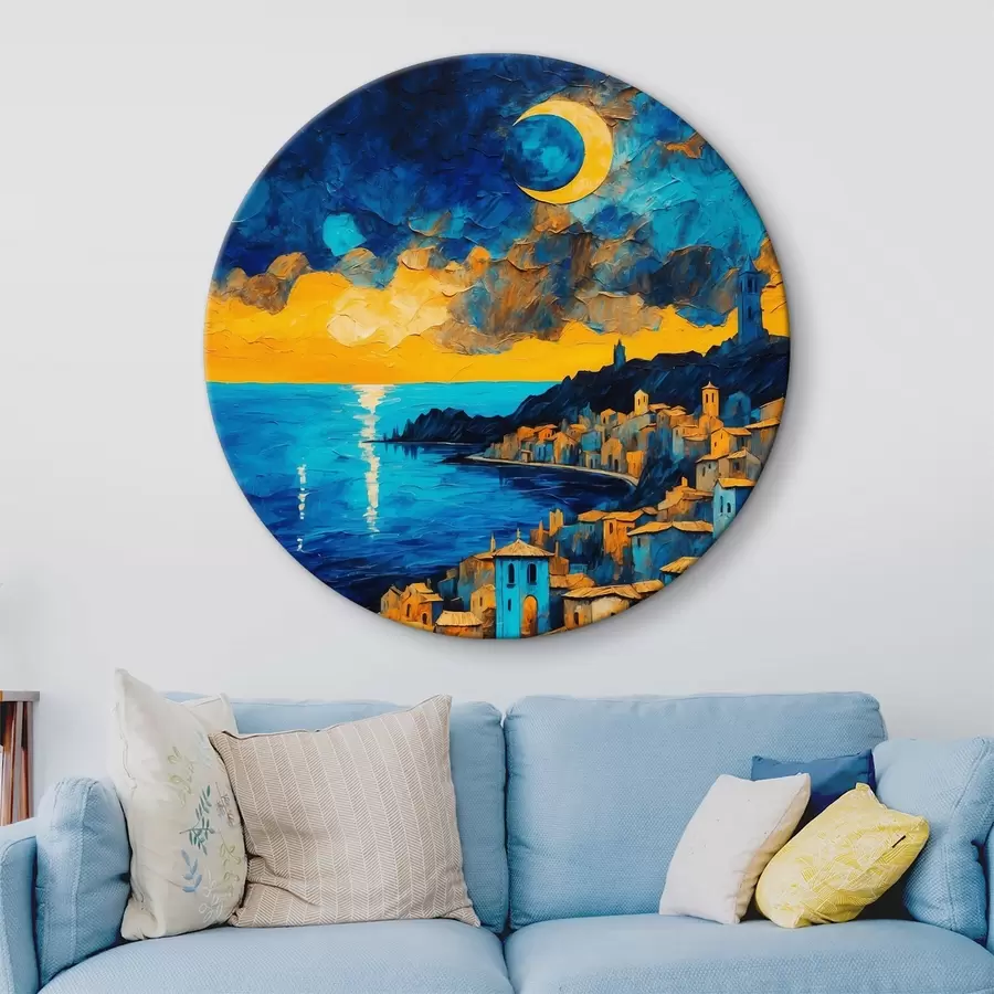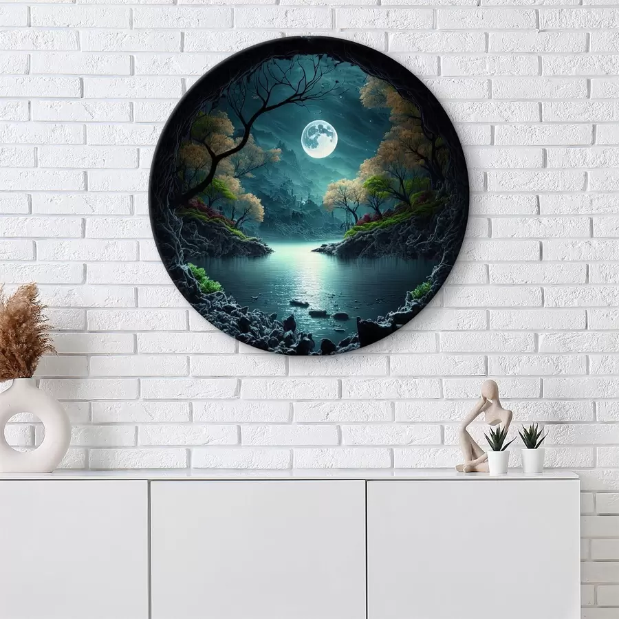 Akrilo tapyba: romantiški jūros peizažai su nukritusiais lapais ir mėnulio šviesos atspindžiais