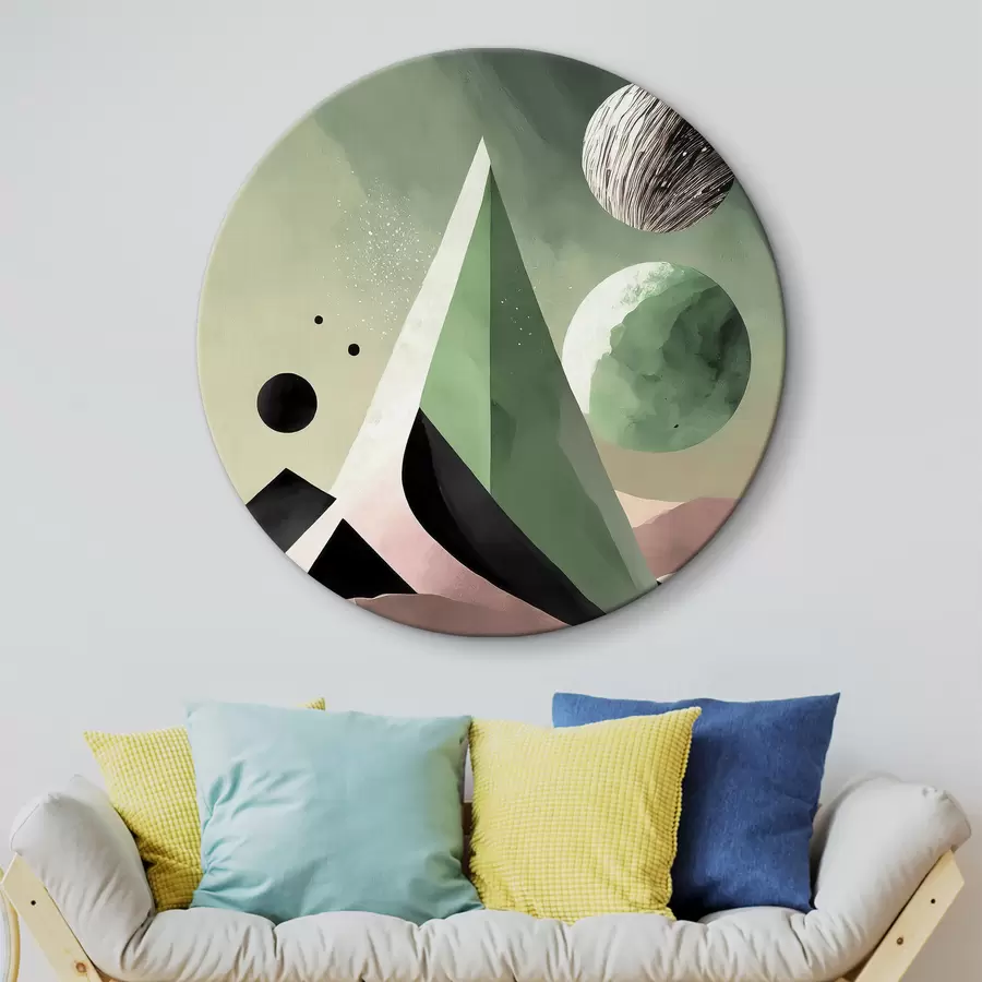 Futuristinis menas, dykuma, geometrinis, kaktusas, minkšta rožinė, kosminis, planetos