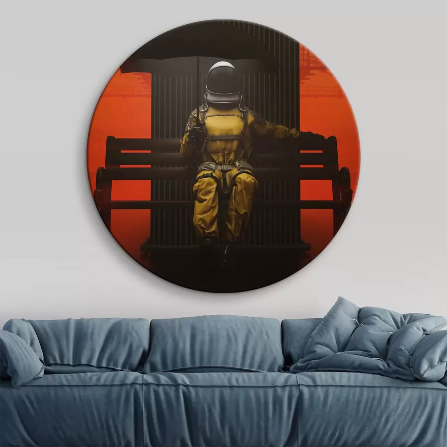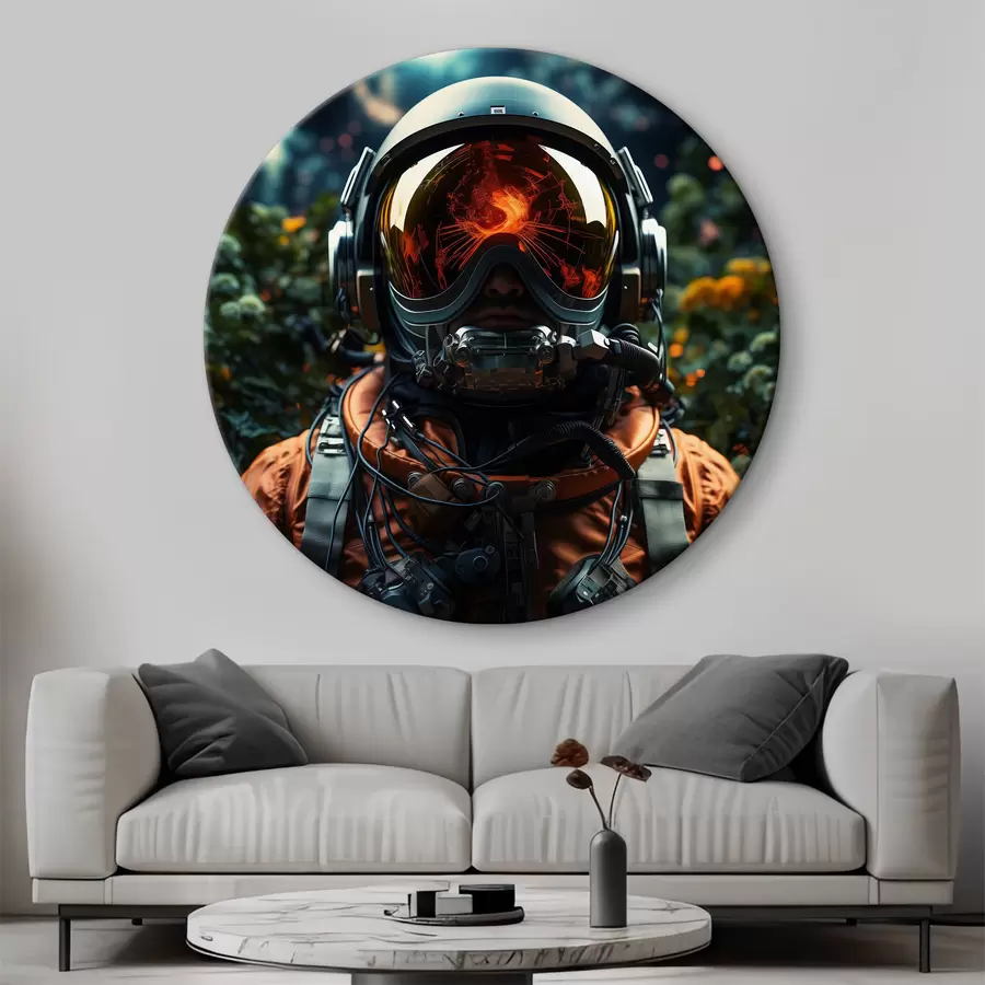 Astronautas abstrakčiame kosmoso fone aliejinės tapybos stiliumi