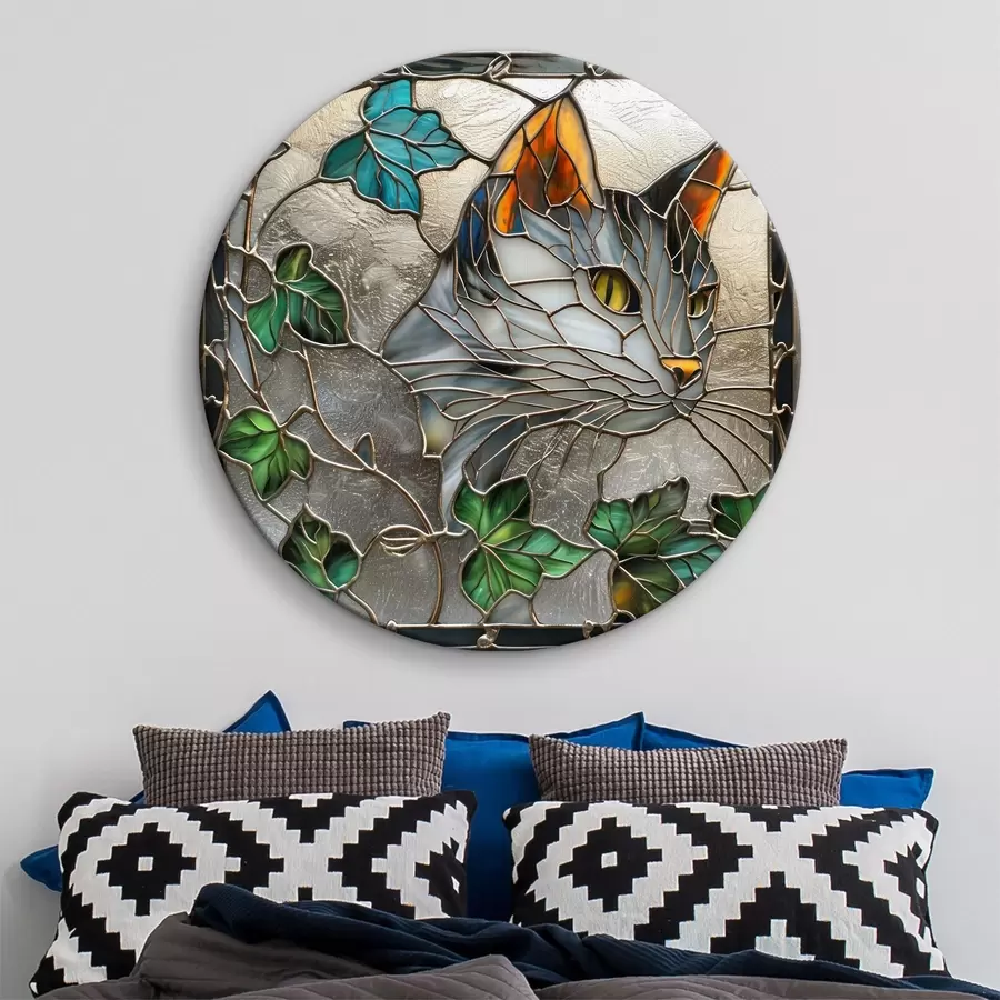 Vitražo įkvėptas meno kūrinys: katė tarp rudens lapų