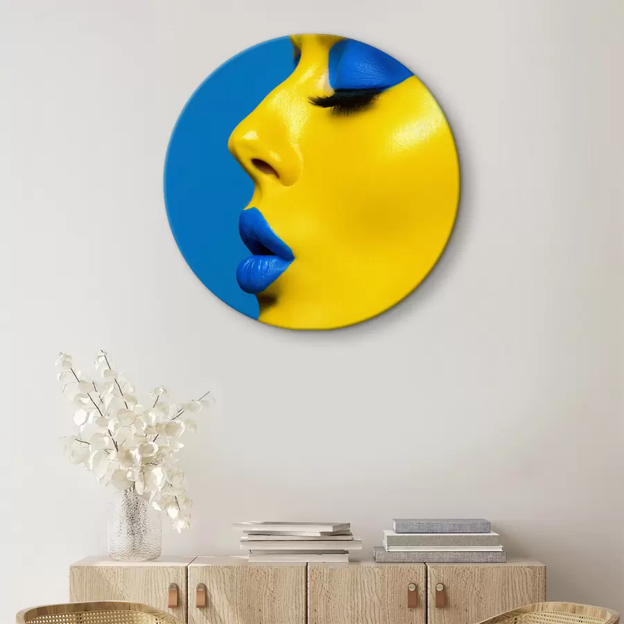 Mėlynos ir geltonos spalvos merginos veidas