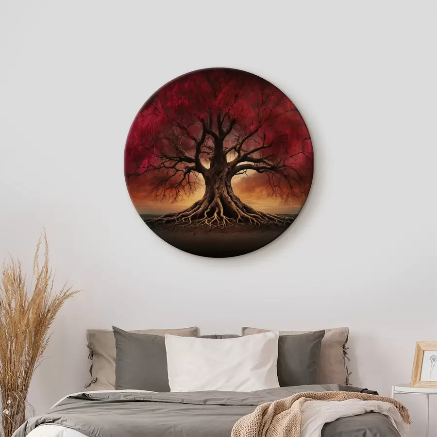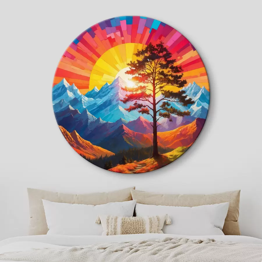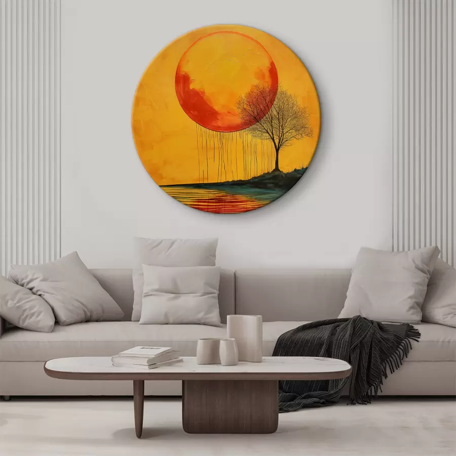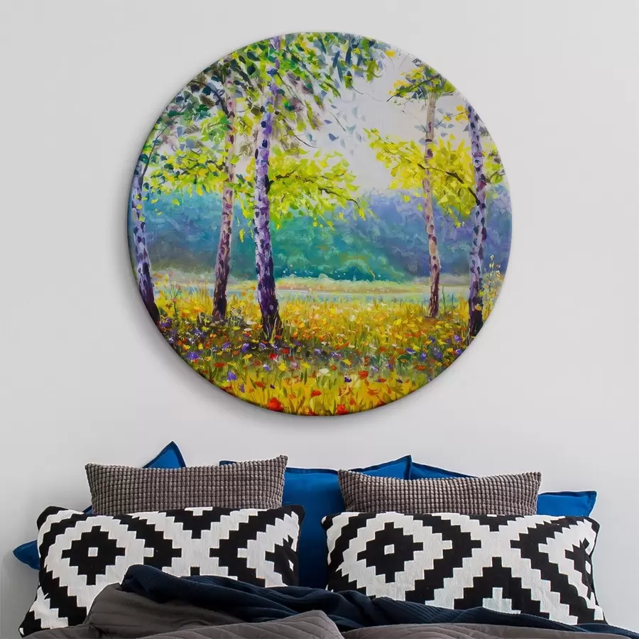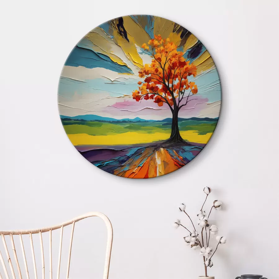 Medis lauko fone ir abstraktus dangaus aliejinis paveikslas