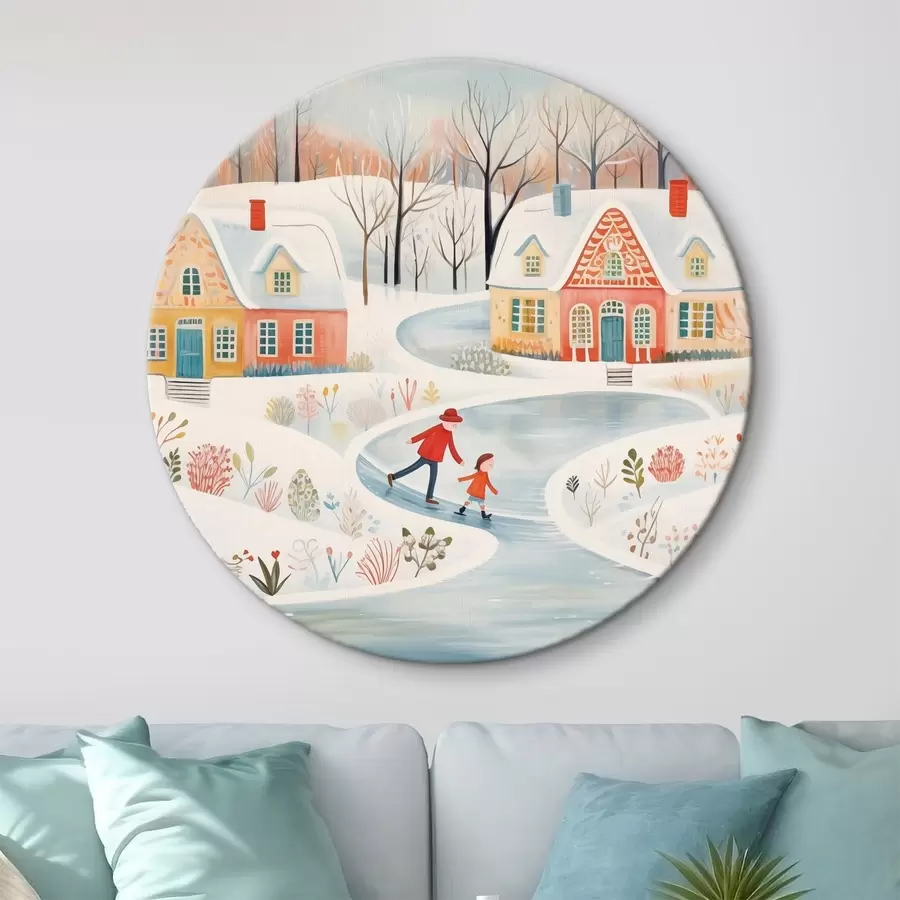 Žiemos kaimas, miškas, gėlės, čiuožyklos, spalvingi namai
