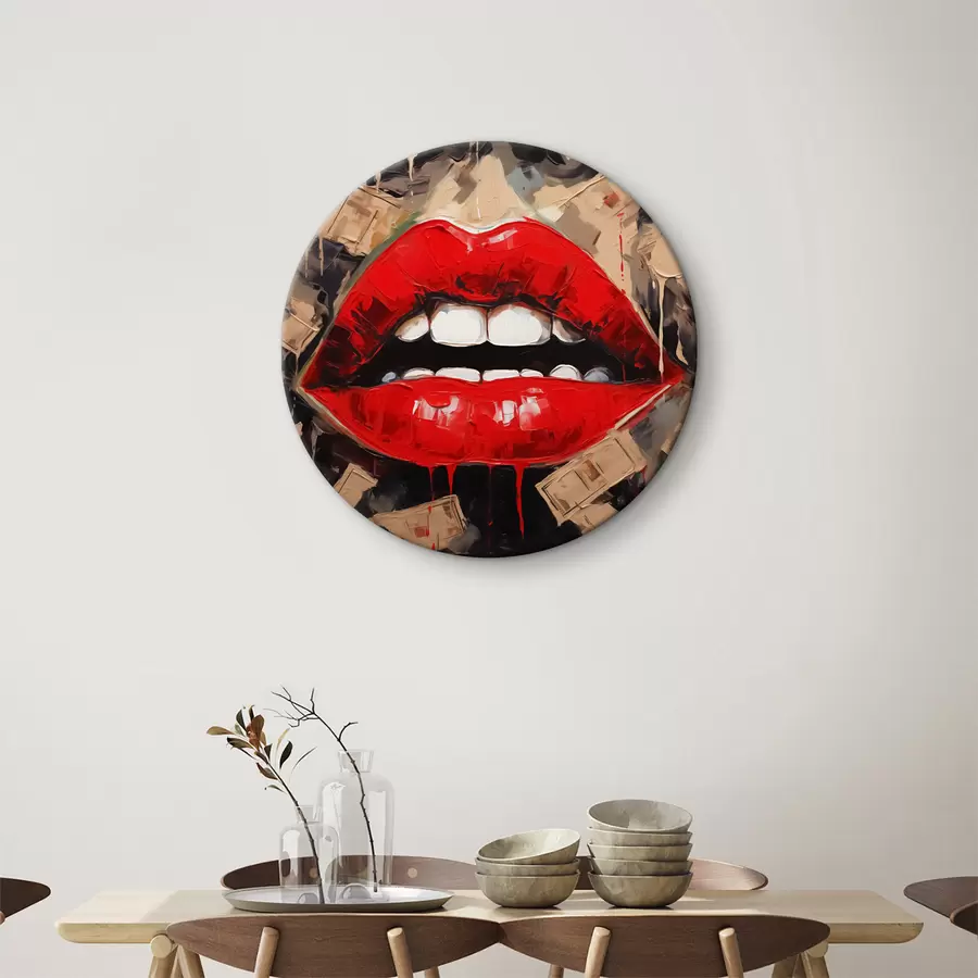 Abstraktus paveikslas raudonos lūpos balti dantys