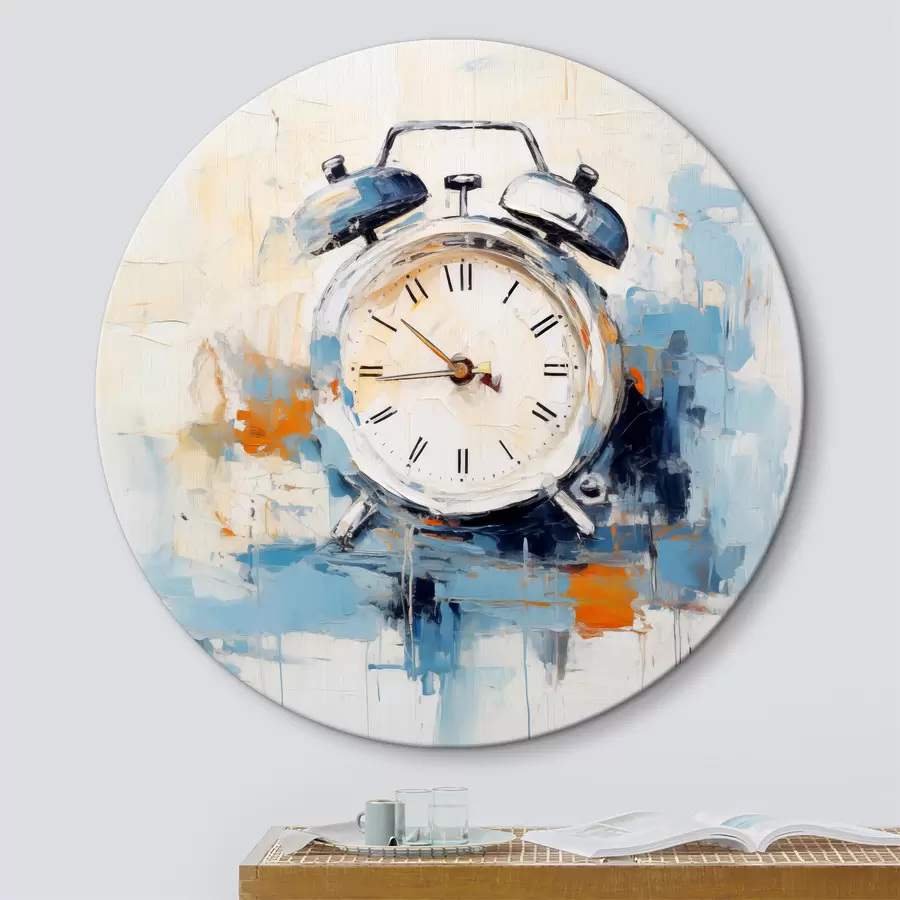 Žadintuvas laikrodis abstraktus aliejinė tapyba, laikas, mėlyna ir balta spalva