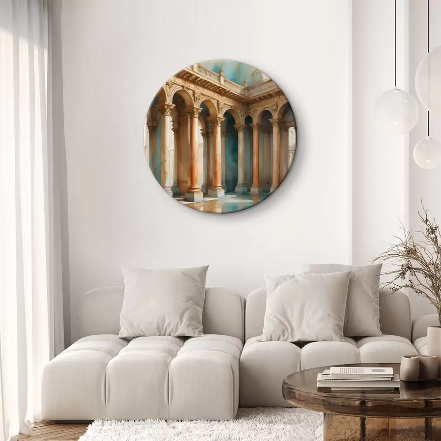 Puošnus interjeras su arkinėmis durų angomis, kolonomis ir įmantriomis architektūrinėmis detalėmis