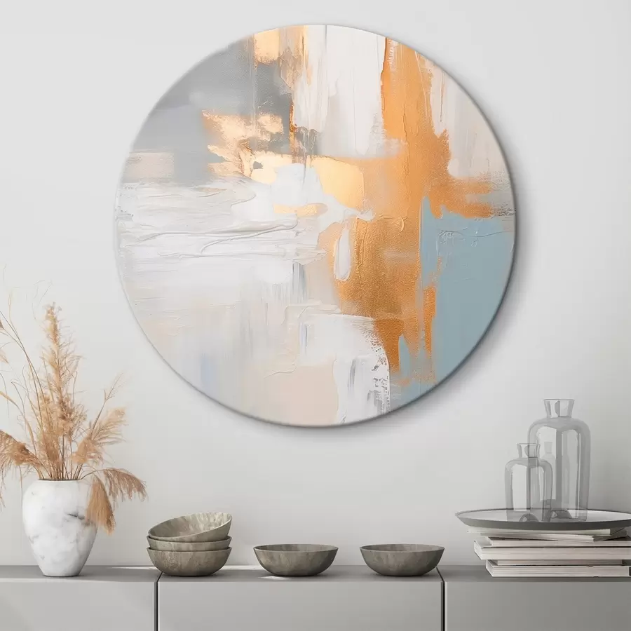 Švelni pastelinė spalva su oranžiniu akcentu ir sklandžiais potėpiais