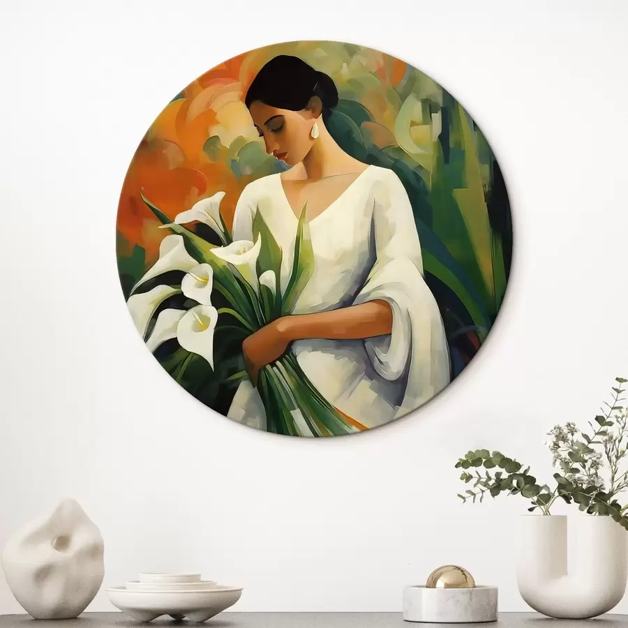 Minimalistinė terakotos žiedų ir geometrijos kompozicija