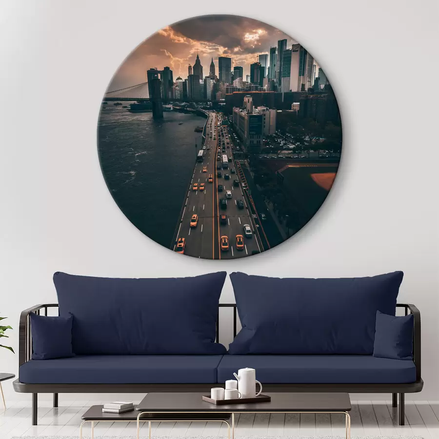 Tiltas per vandenį su automobiliais ir pastatais fone
