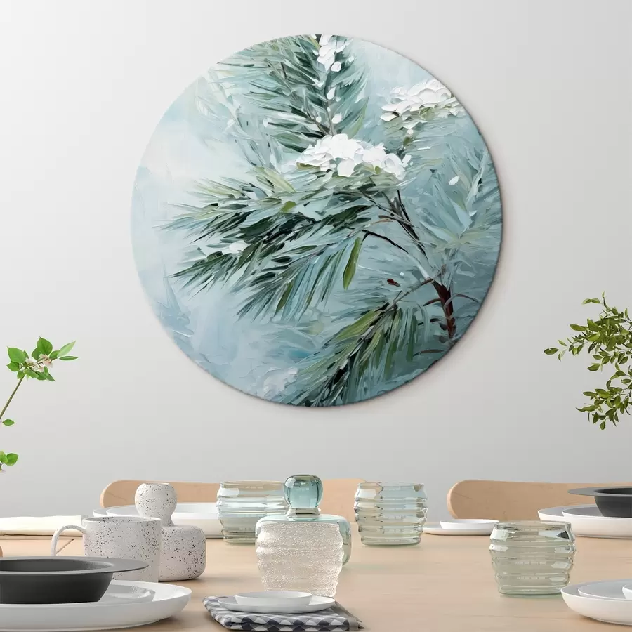 Eglės šaka snieguotoje paveikslo imitacijoje