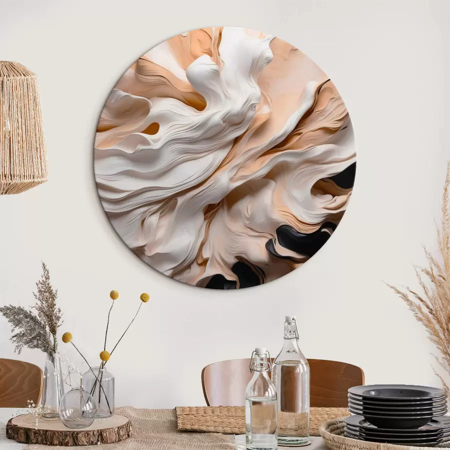 Reljefiniai apskritimai ir šaka šiltų neutralių atspalvių