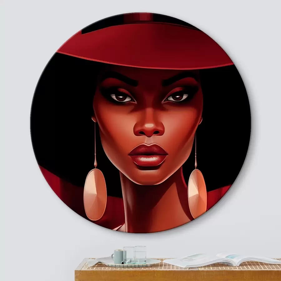 Abstraktus moters portretas su giliais tamsiais ir šiltais tonais,