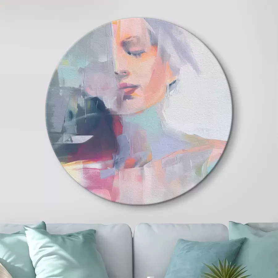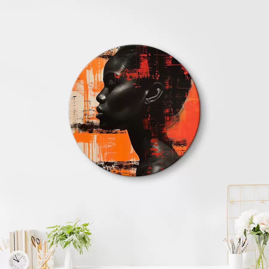 Abstraktus moters portretas su giliais tamsiais ir šiltais tonais,