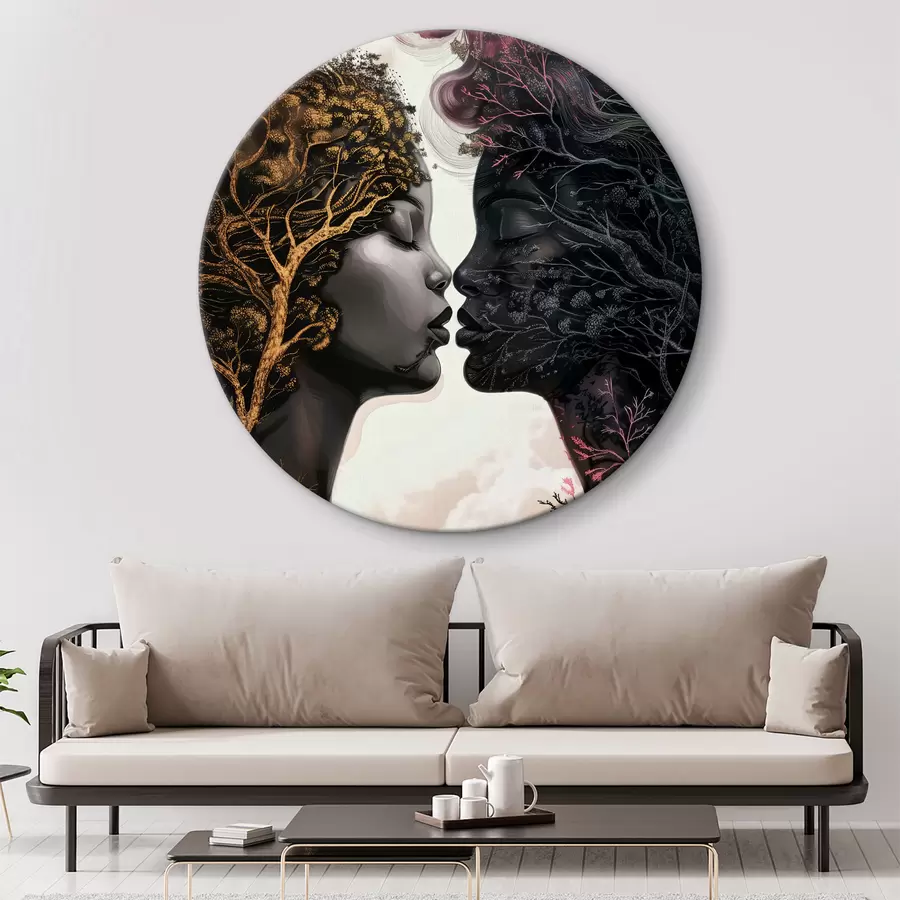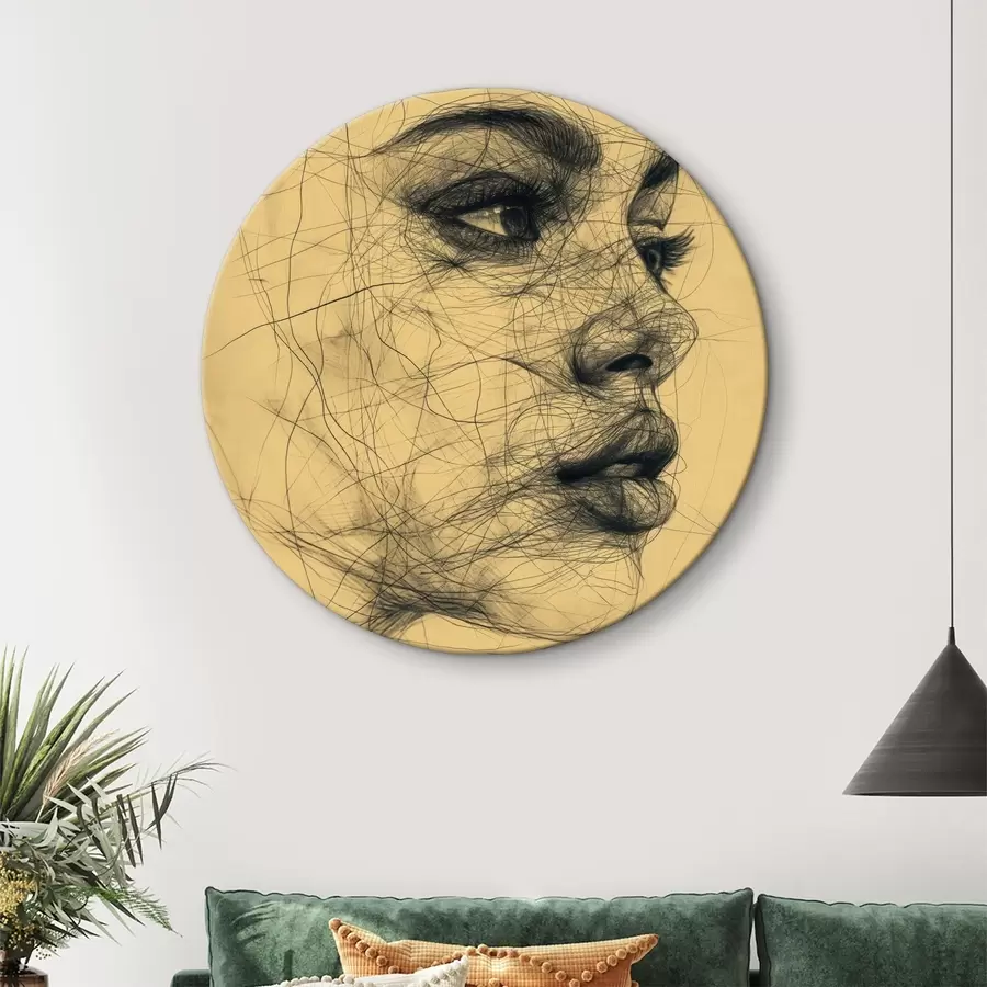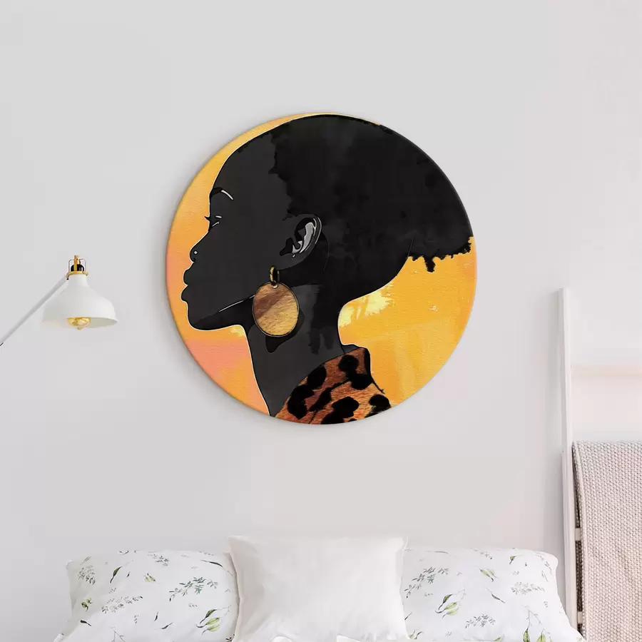 smėlio spalvos afrikietiško stiliaus moters portretas profilyje su dideliais auskarais