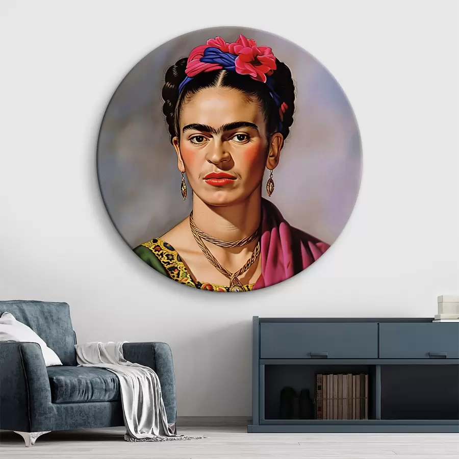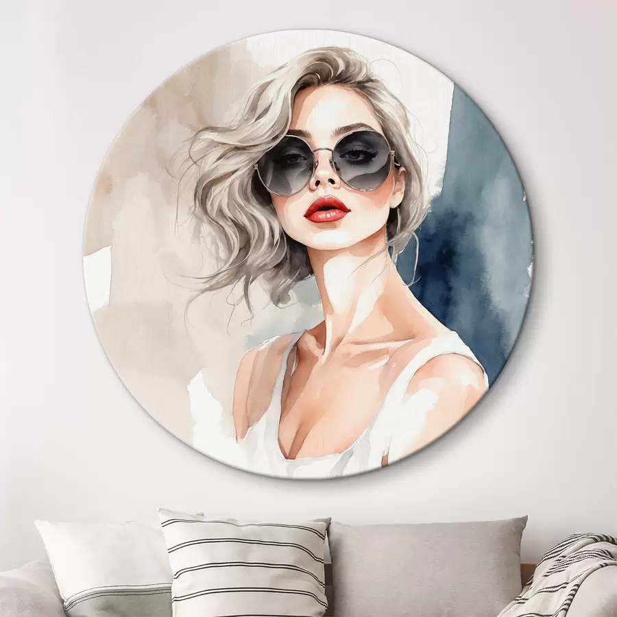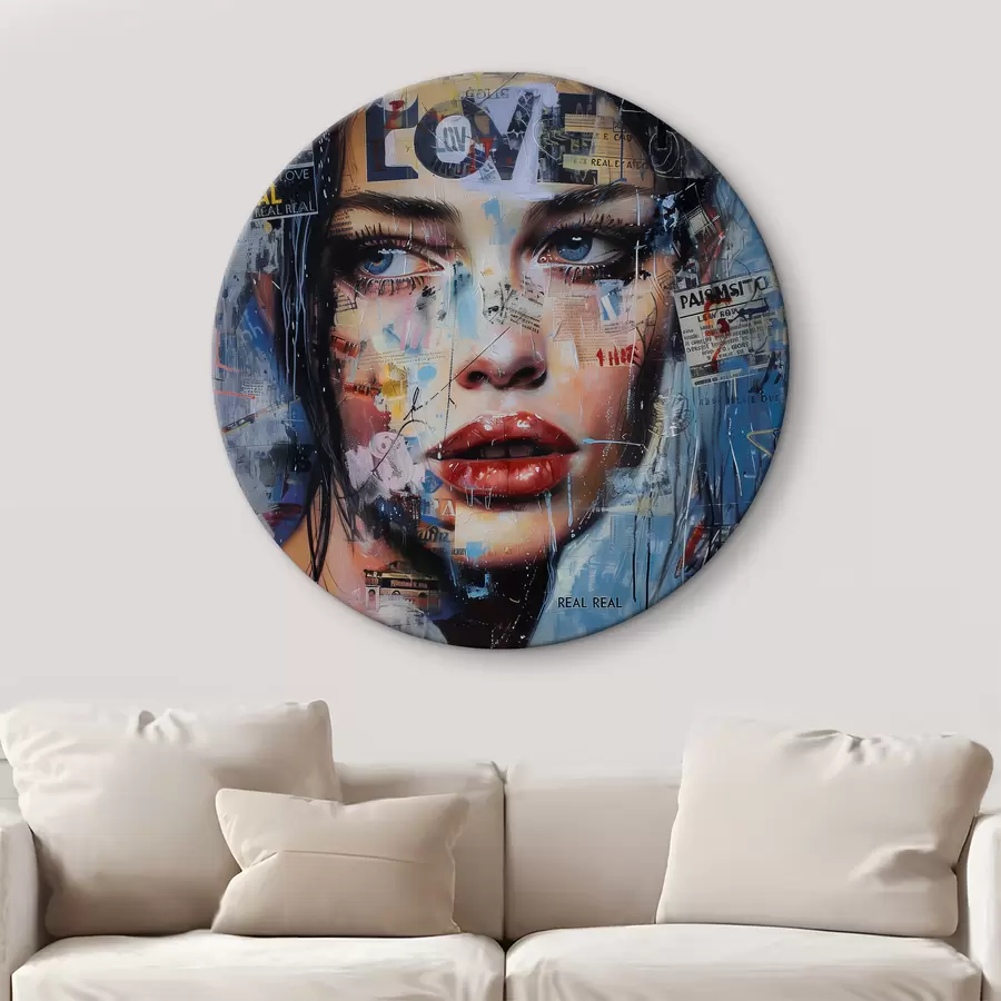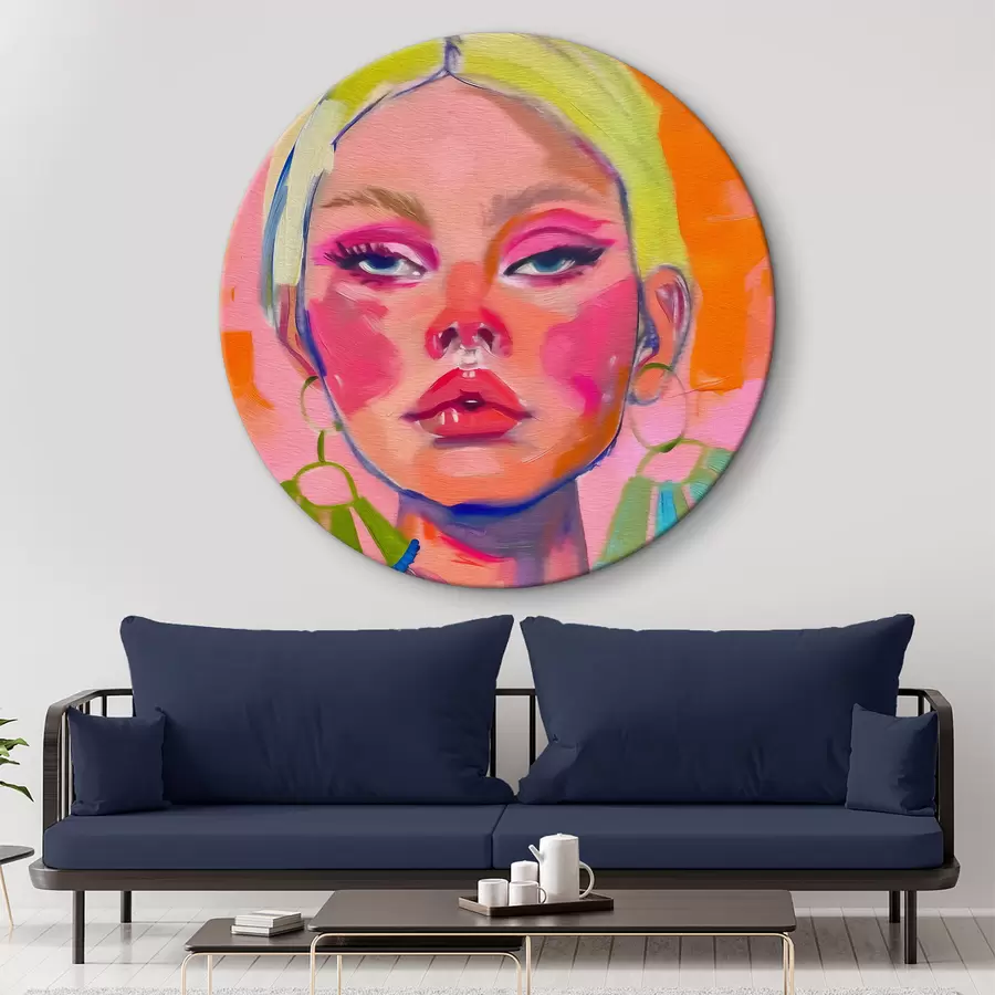 Ryškiai geltonos ir mėlynos spalvos minimalistinis gražios merginos portretas