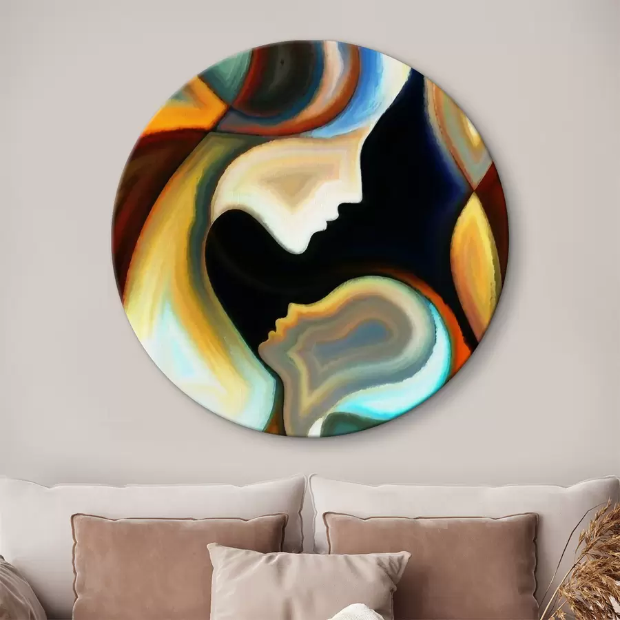 Abstrakcija su miesto siluetais ir dviem figūromis