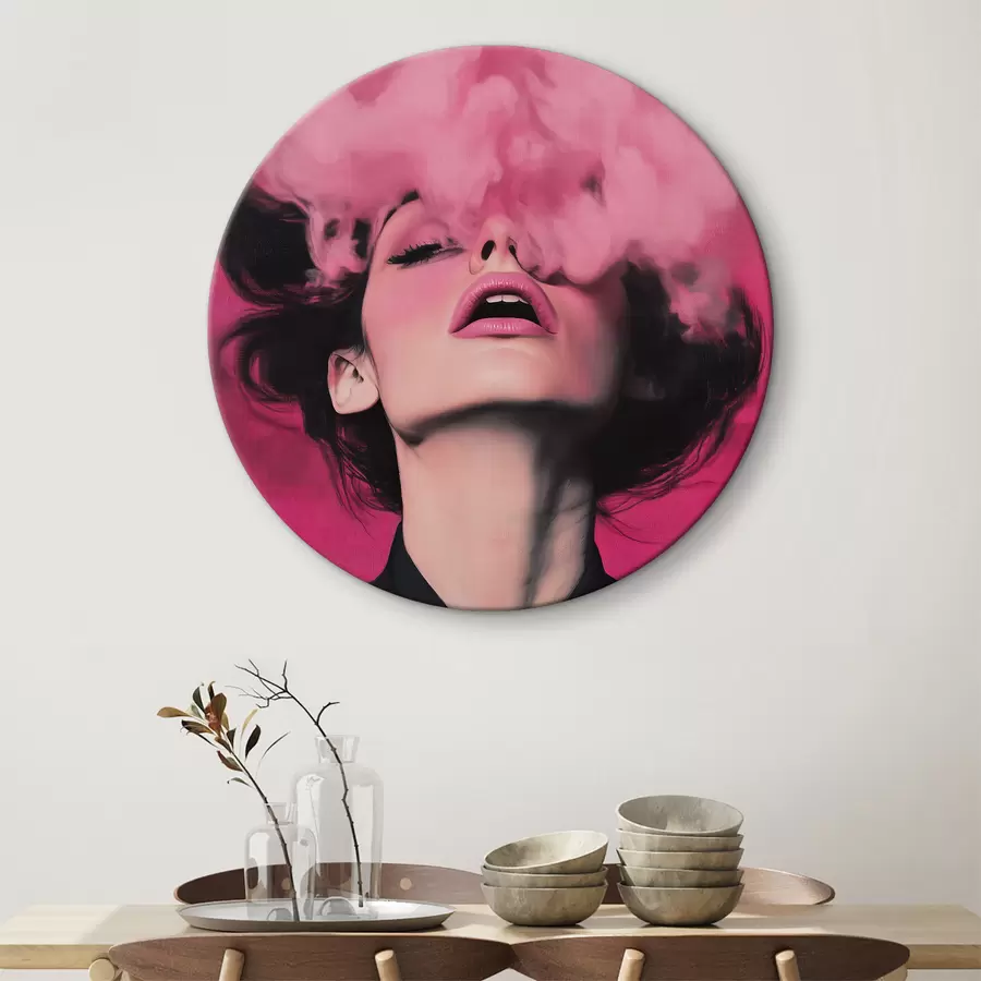 Mergina su suknele su rožiniais ir violetiniais atspalviais"