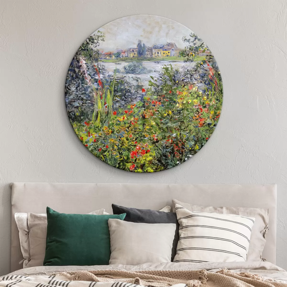 Apvalūs paveikslai Gyvybingos gėlės prie ramaus ežero r04136