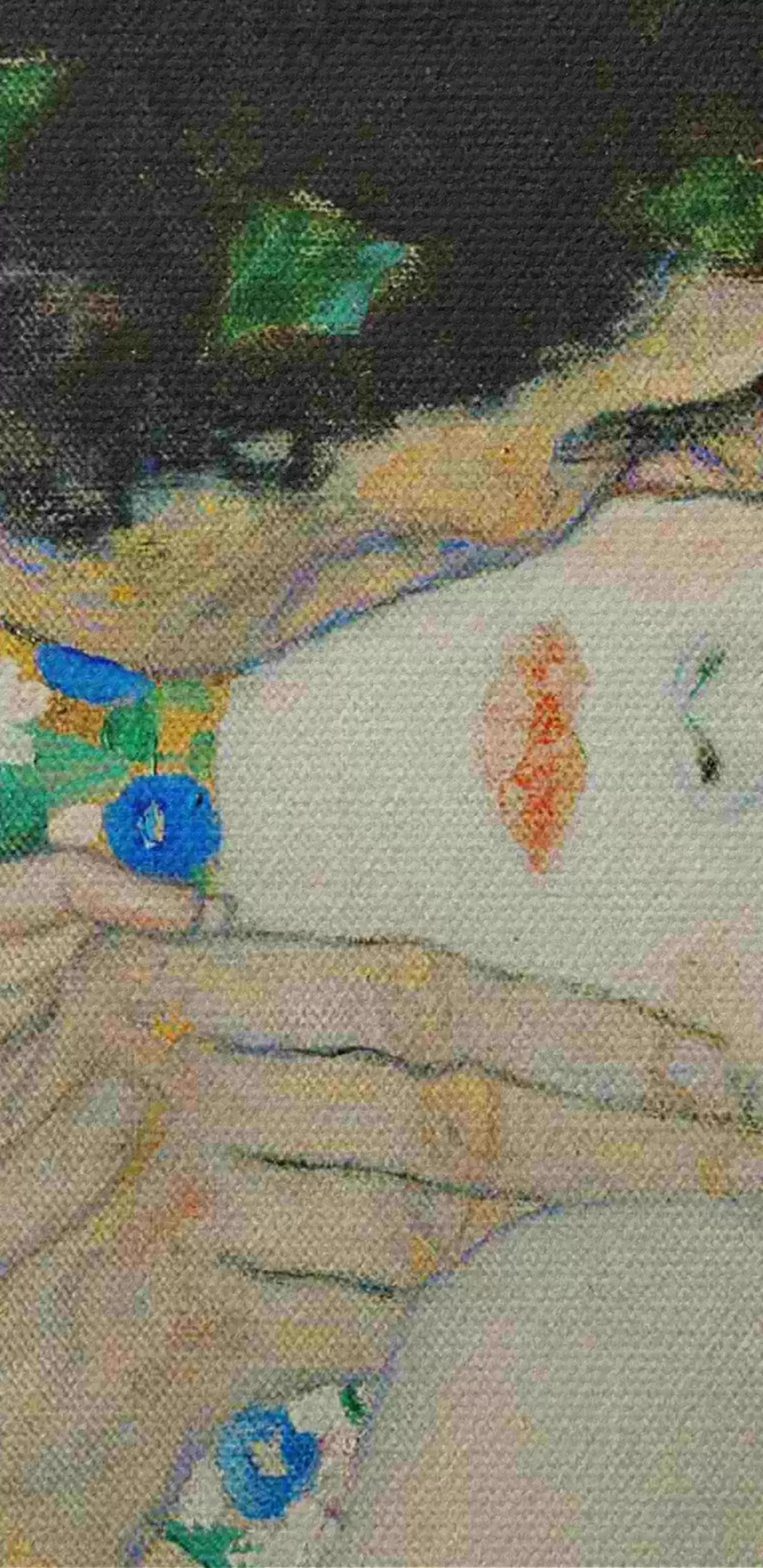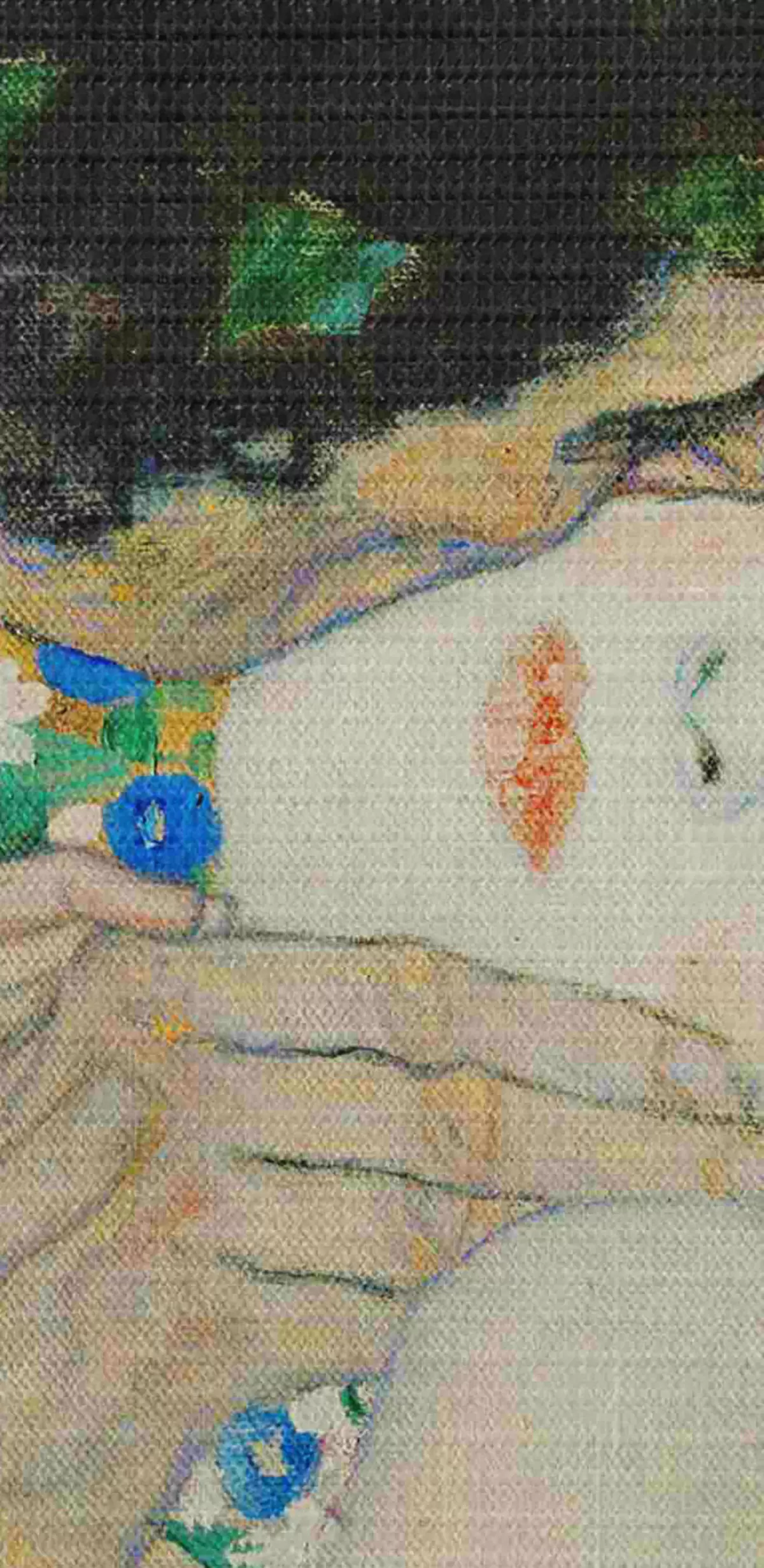 Paveikslą galima švelniai nuvalyti sausa minkšta šluoste arba kempine; nerekomenduojama naudoti drėgnų priemonių. Drėgną kempinę galima naudoti tik tuo atveju, jei paveikslas buvo lakuotas.