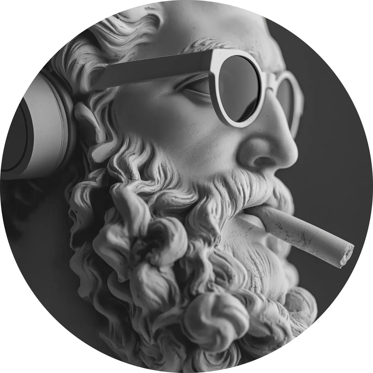 Nuotrauka juoda ir balta senovės graikų Dzeuso skulptūra moderniu stiliumi Nr r26122