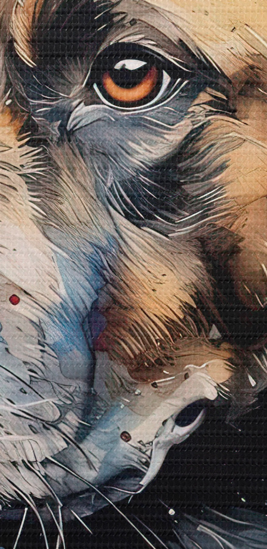 Galima užsakyti trijų rūšių medžiagą: "Economic Canvas" - tanki ir patvari medžiaga skaitmeninei spaudai, identiška dailininko drobės medžiagai, vandeniui atsparus paviršius, tikroviškas detalių atkūrimas, vidutinio grūdėtumo medžiaga. Premium Canvas - tekstūra primena dailininko drobę (susipynę smulkūs siūlai). Minkštas, detalus vaizdo atkūrimas ant matinio paviršiaus. Eco-Premium - aukštos kokybės 100 % medvilninis audinys. Dėl natūralių medvilnės pluoštų medžiaga yra patvari ir atspari nusidėvėjimui. Puikus spalvų atkūrimas ir detalumas.