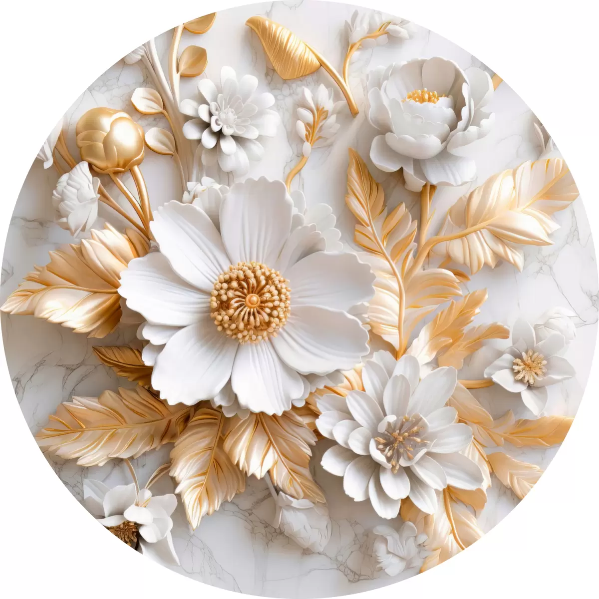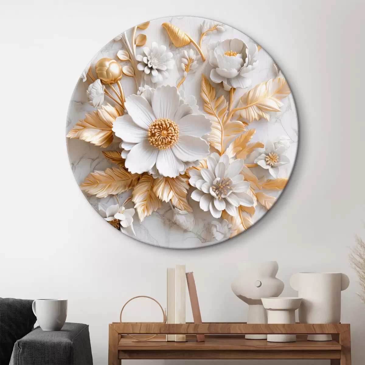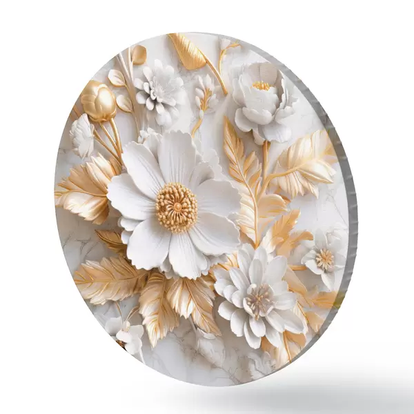 Apvalūs paveikslai Švelnios smėlio spalvos gėlės su 3D efektu r32778