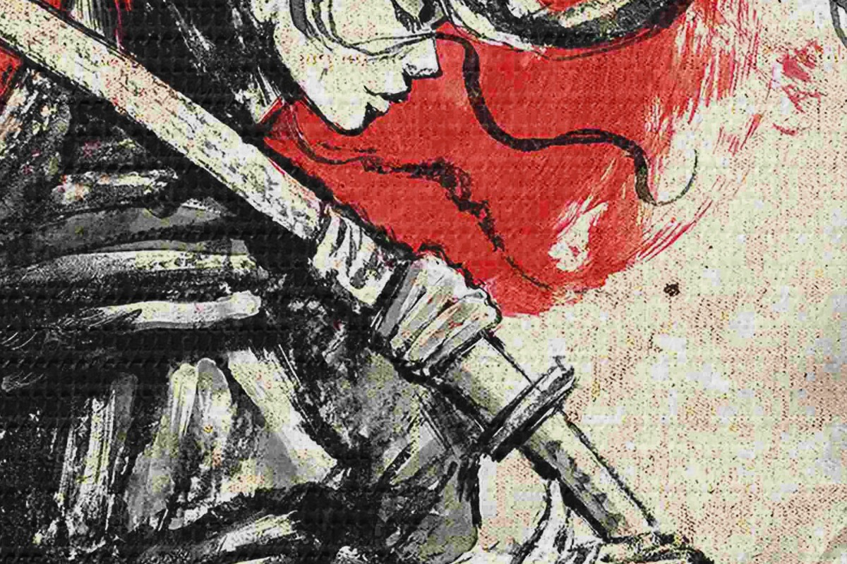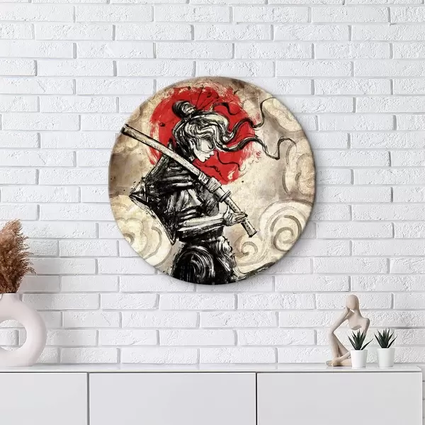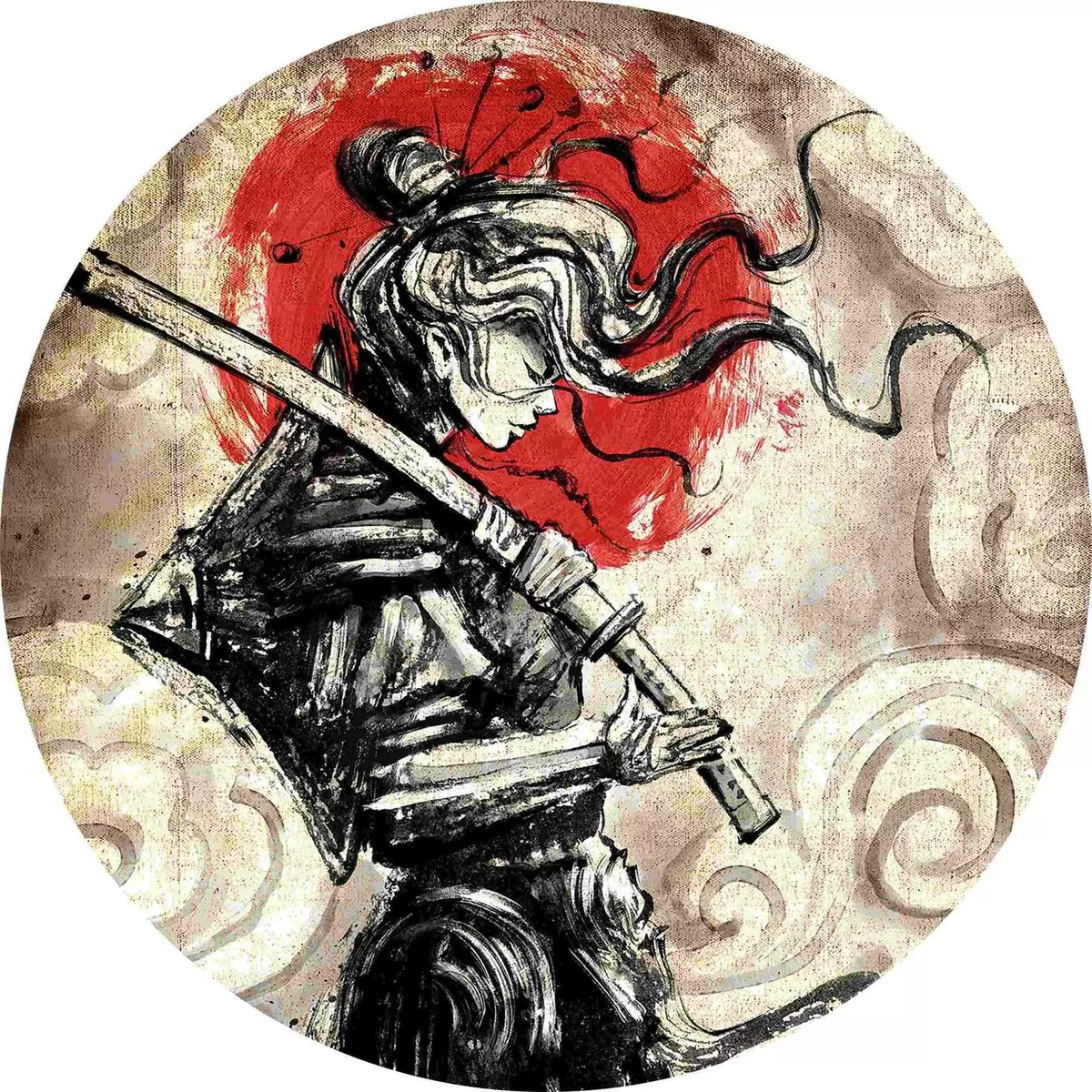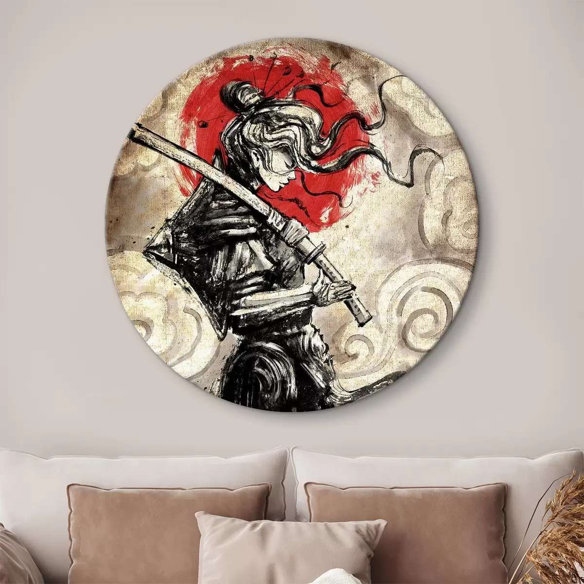 Nuotrauka Graži samurajų mergina su katana ant peties Nr r33060